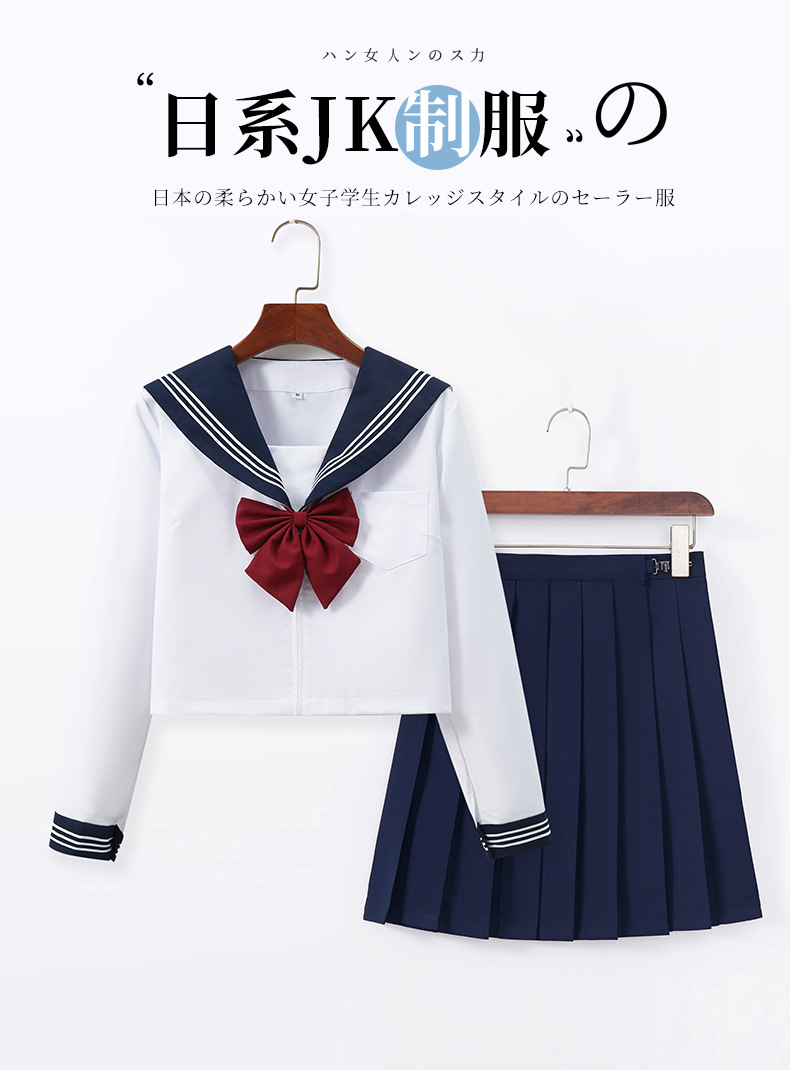 Производитель поставляет белый воротник с тремя jk униформа юбка набор с длинными рукавами