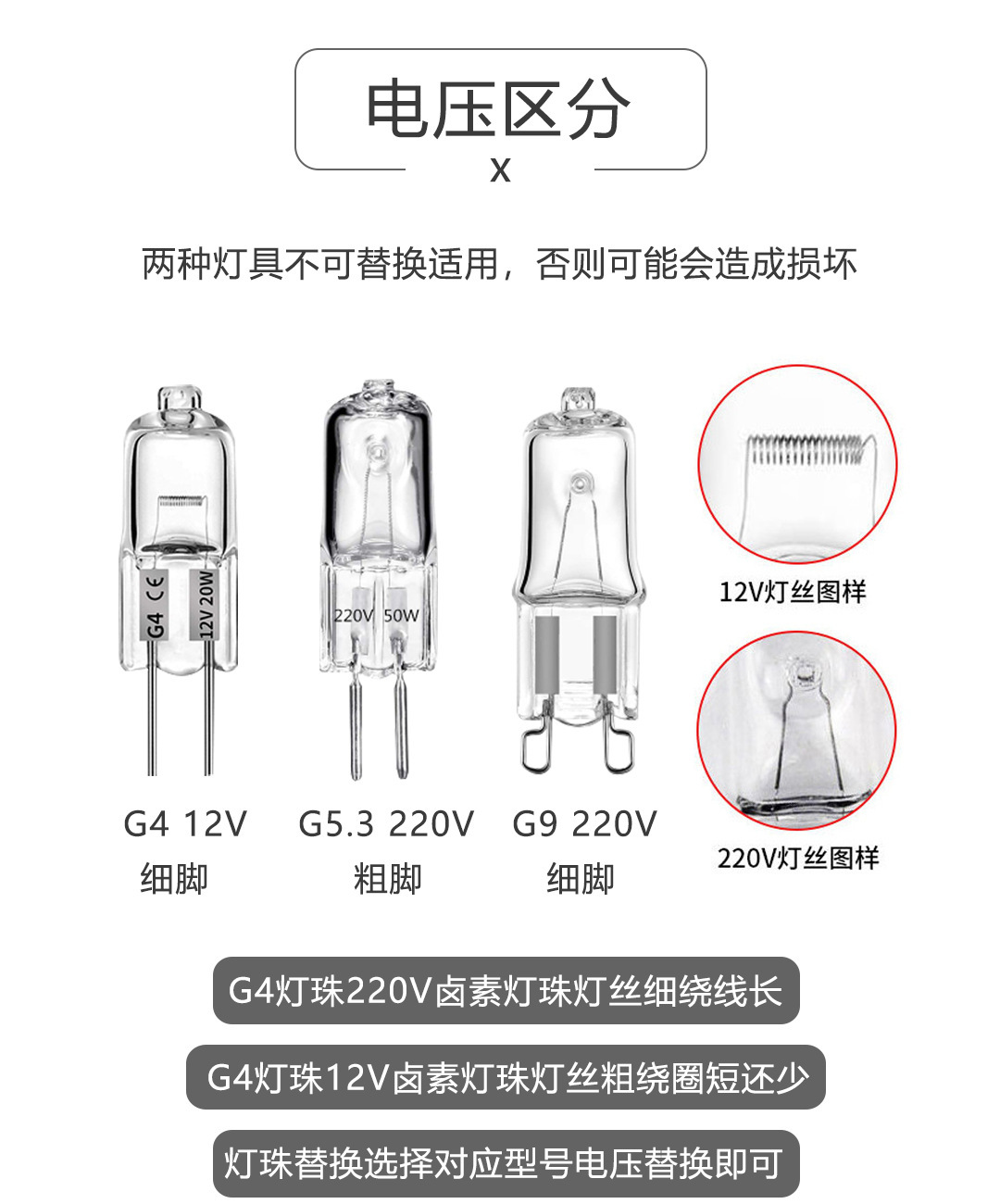 G4 12 В 10 Вт (длительный срок службы); G4 12 В 20 Вт (длительный срок службы); G5.3 толстые ножки 12 В 35 Вт (длинный срок службы); G5.3 толстая ножка 220 В 35 Вт (длинный срок службы); G9 220 В 40 Вт (длительный срок службы); G9 220 В 40 Вт (длительный срок службы) [матовый]; G4 220 В 35 Вт (длительный срок службы)
