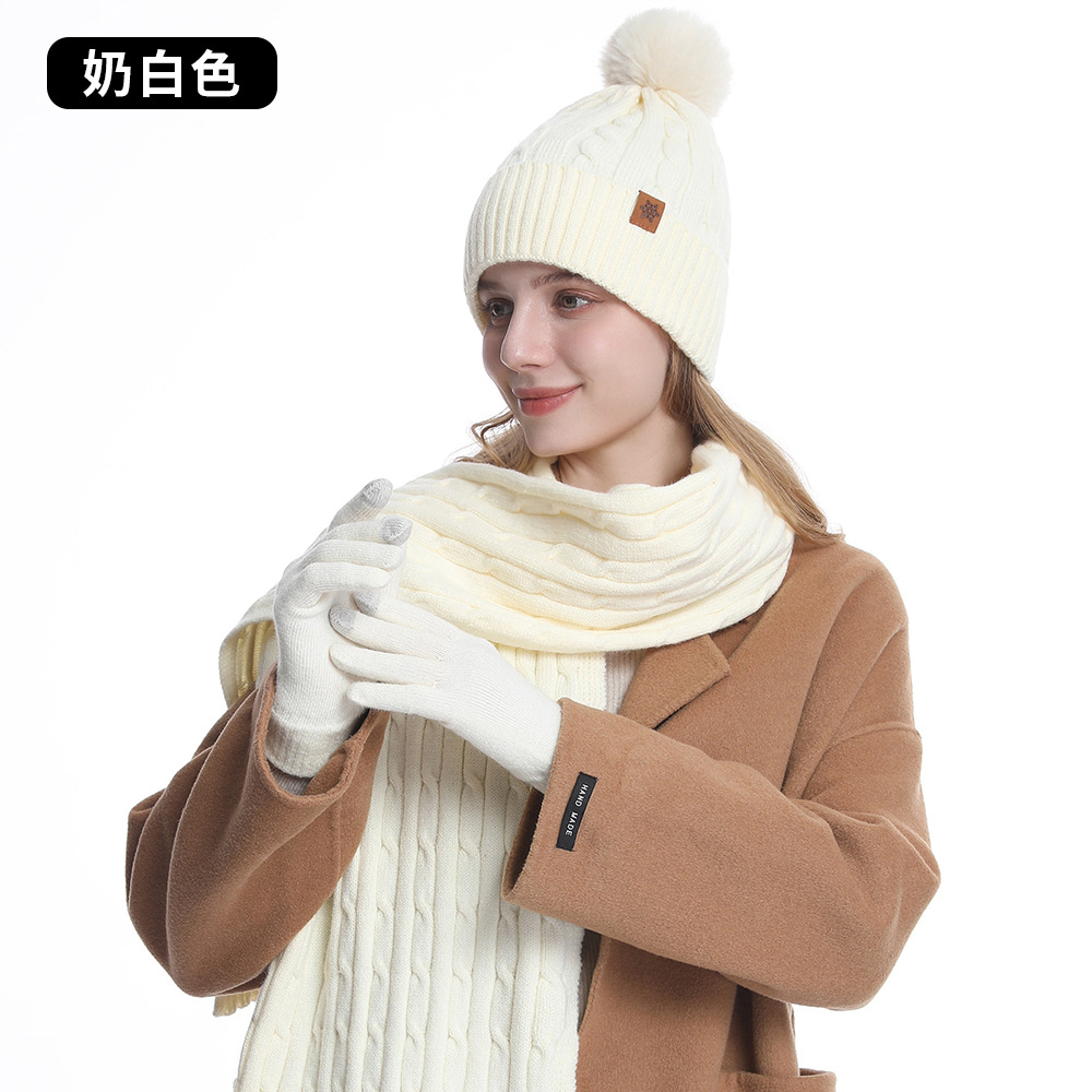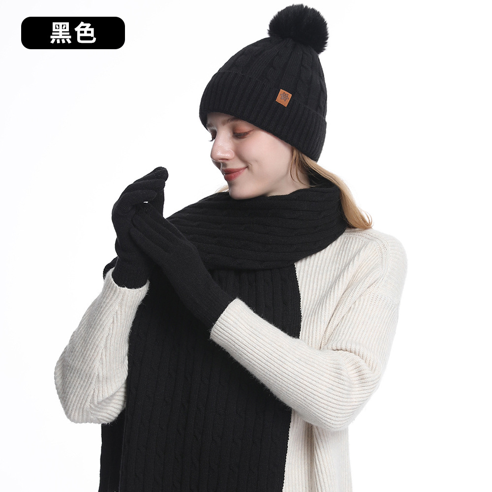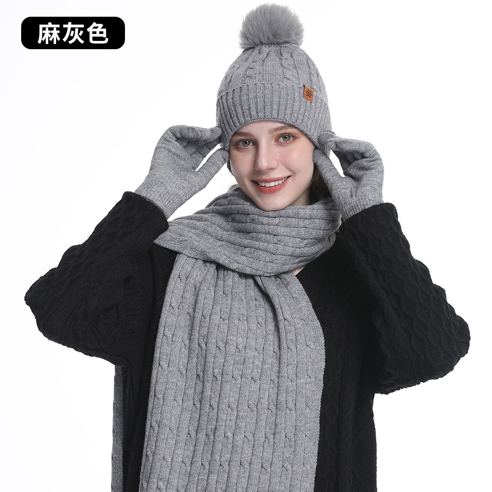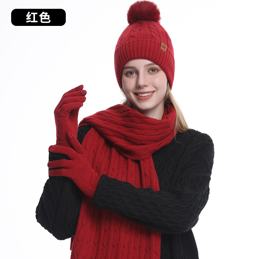 Амазонка вязаная шапка женская зимняя теплая езда защита ушей шерстяная нить вязаная шапка шарф перчатки набор из трех частей