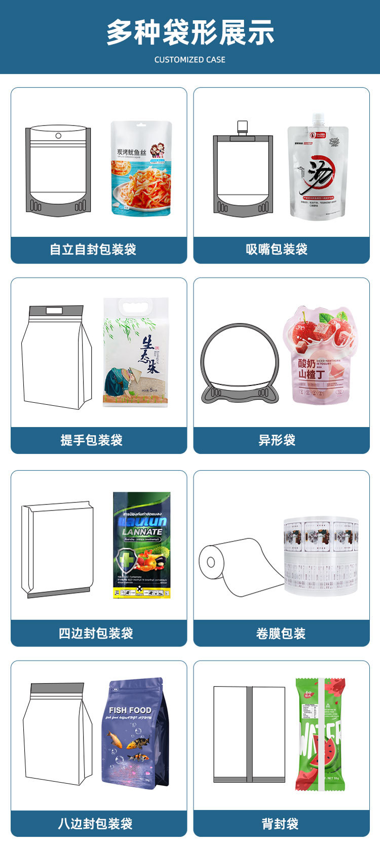 Индивидуальный трехсторонний герметичный пакет; Индивидуальная сумка с носиком; Доставка по индивидуальному заказу; Вакуумные пакеты на заказ; Сумки из алюминиевой фольги по индивидуальному заказу; Индивидуальные упаковочные пакеты специальной формы; Индивидуальная уплотнительная пленка для композитного упаковочного покрытия