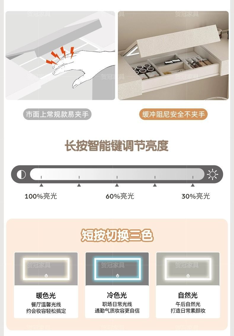 【 1.2m + 1.2m Туалетный столик】Кремово-белый; [ 0.6m комод + 1.2m туалетный столик] Кремово-белый