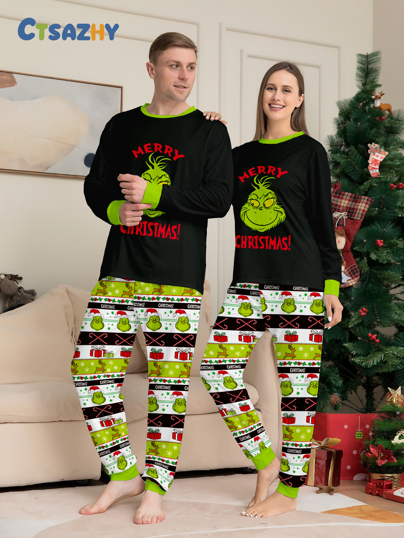 Amazon temu новый рождественский мультфильм родил и ребенок пижамы европейские и американские брюки с длинными рукавами с принтом алфавита домашний набор