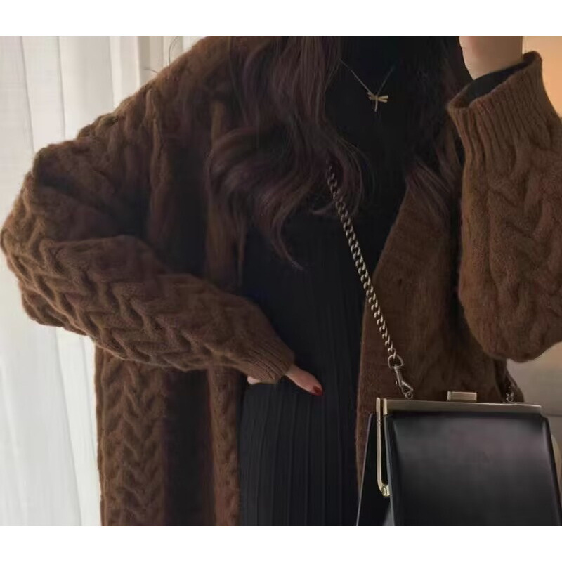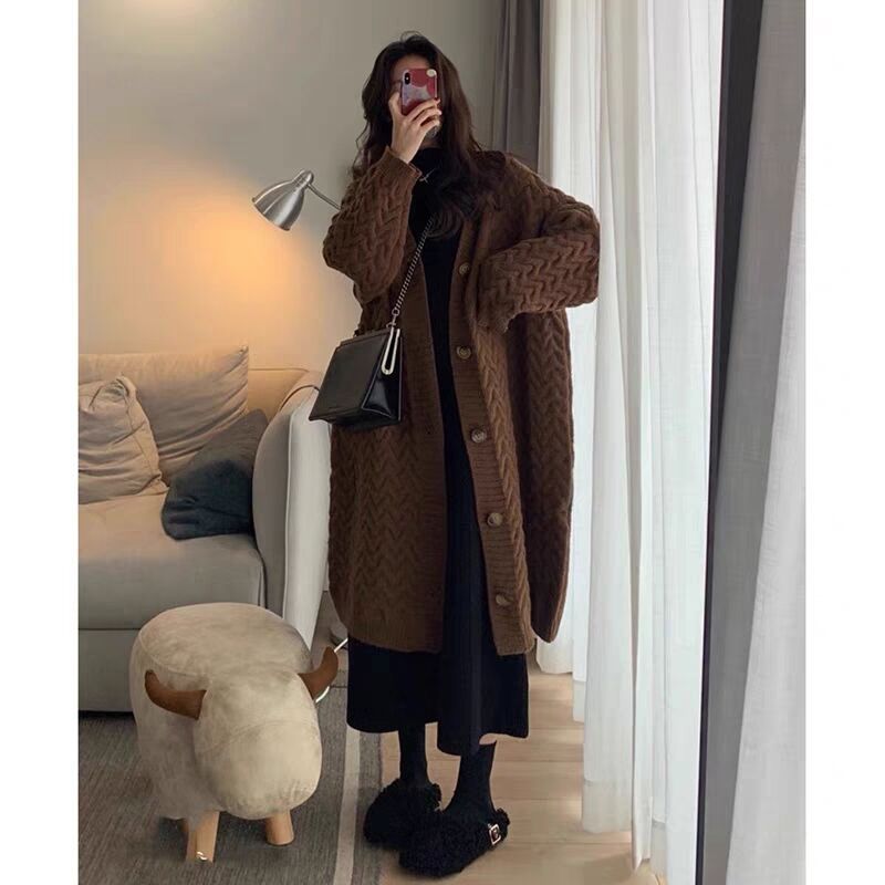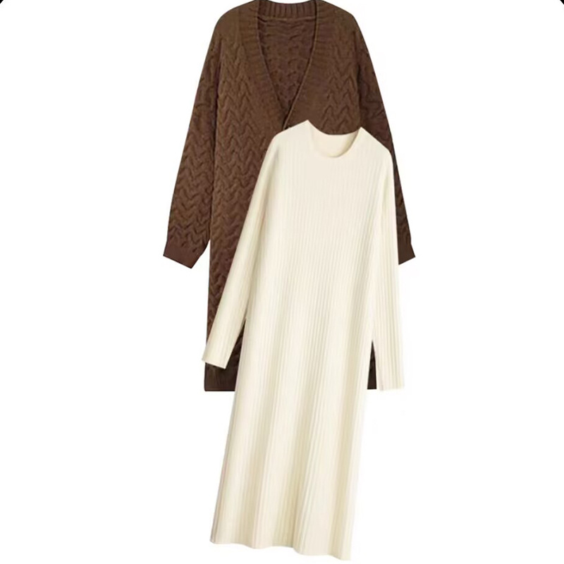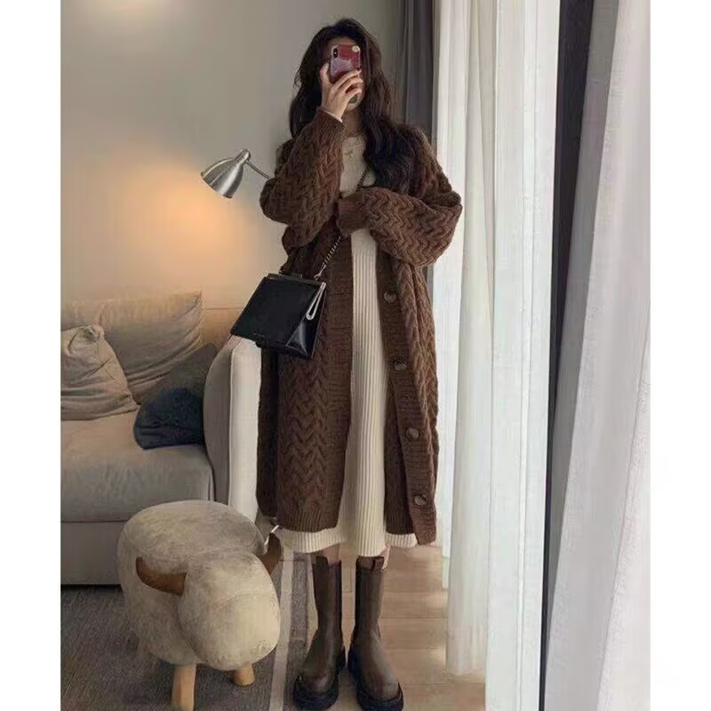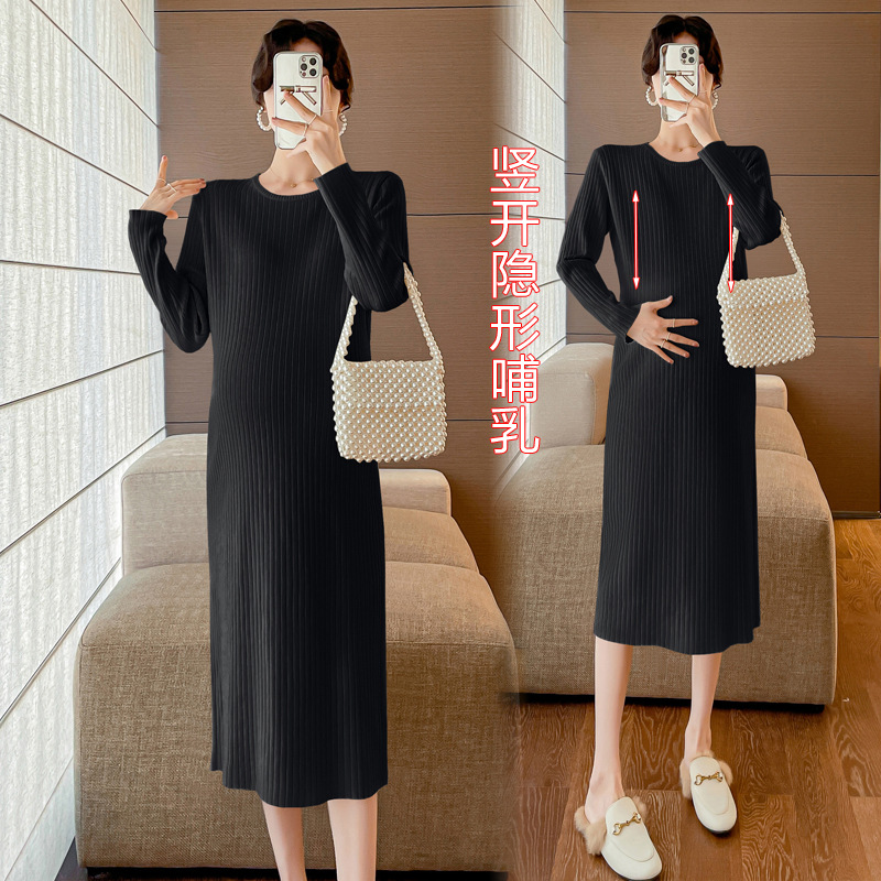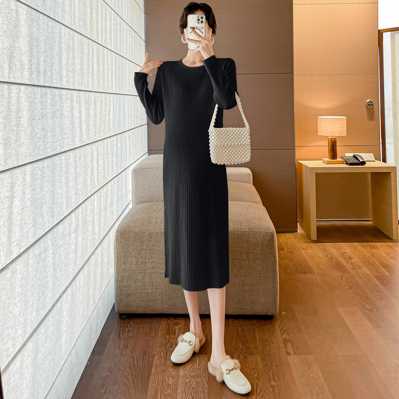 Пятно ~ Осенний и зимний набор для беременных чая Mailad Толстый трикотажный кардиган с круглым вырезом свитер длинное платье