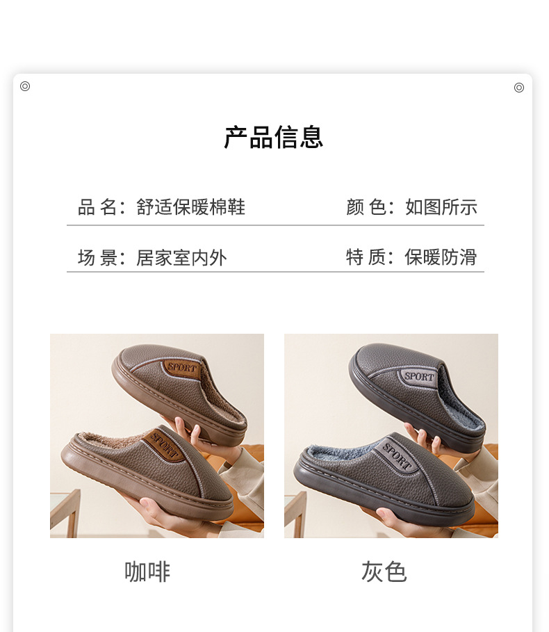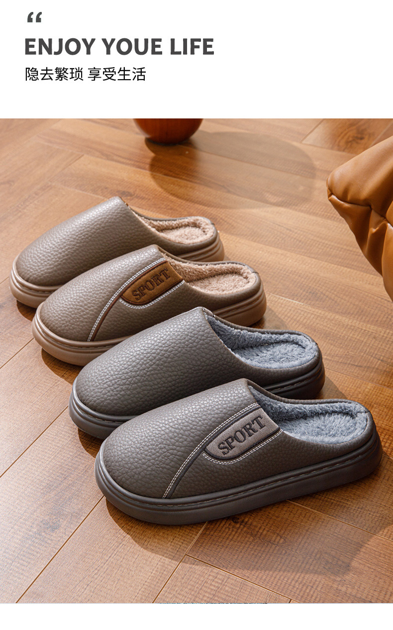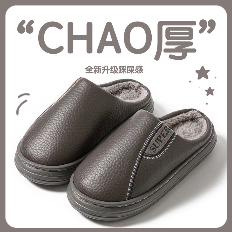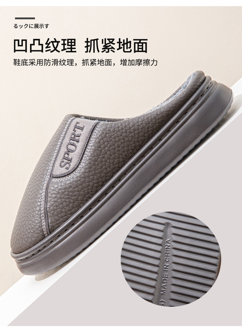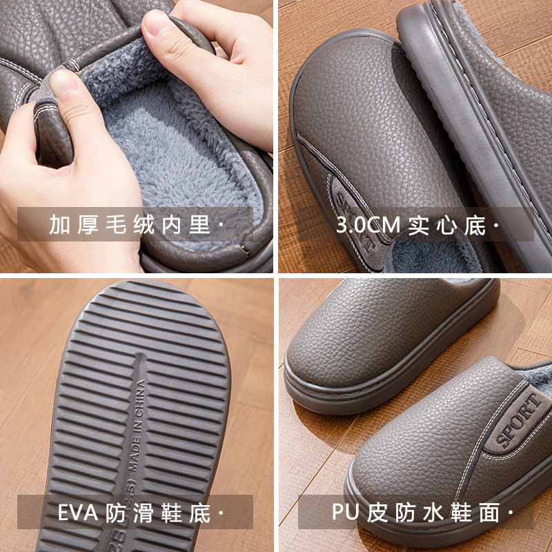 Хлопчатобумажные тапочки мужской большой размер нескользкие осенние и зимние новые бархатные утолщенные дома крытая кожа водонепроницаемые хлопчатобумажные тапочки