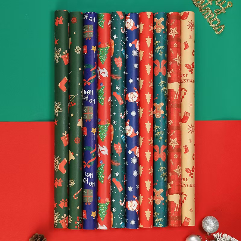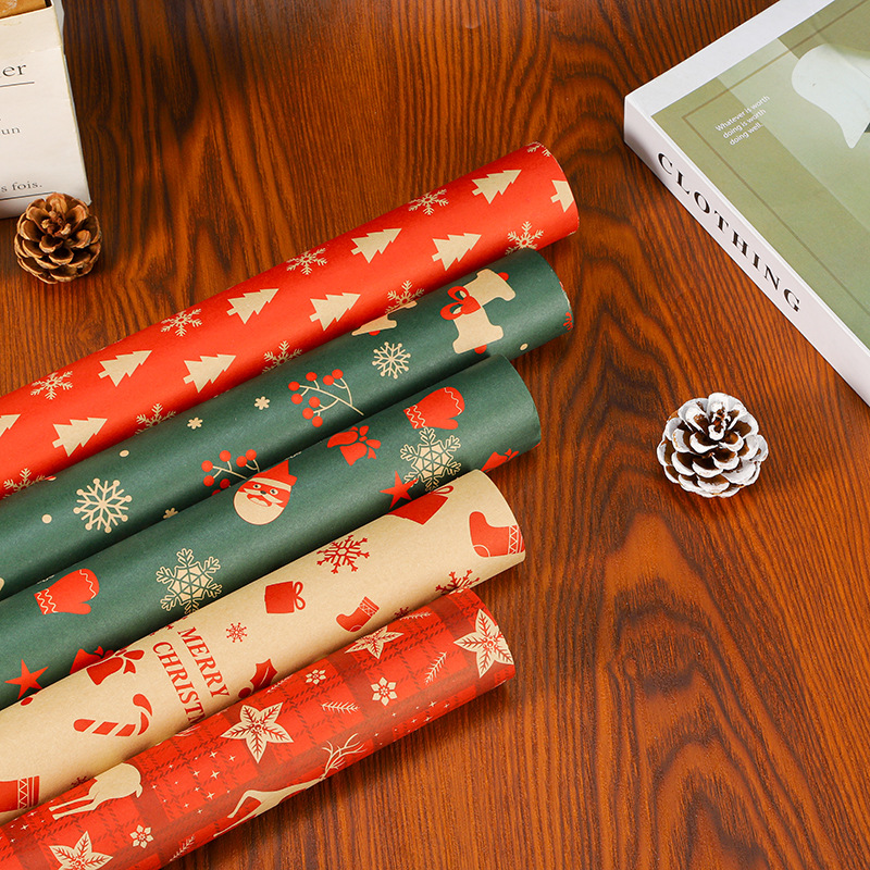 Рождественская упаковочная бумага спотовая оптовая трансграничная горячая распродажа новый подарок подарок букет упаковки крафт-бумаги производитель