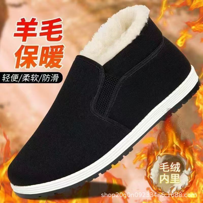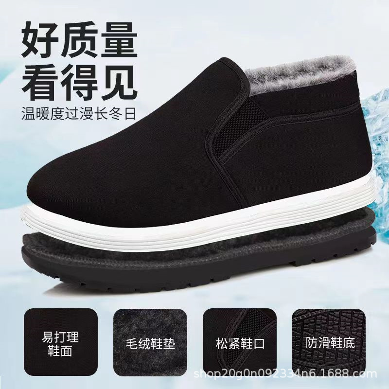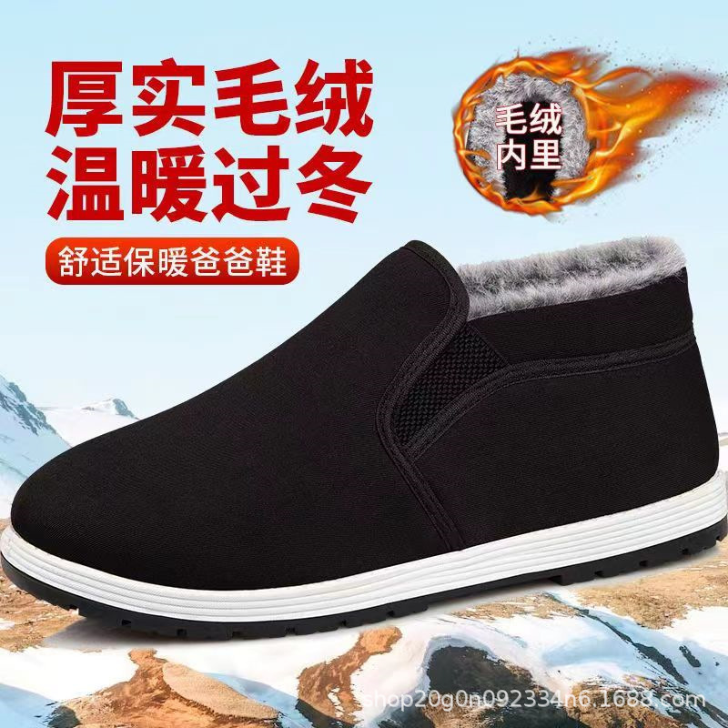 Зимняя старая пекинская обувь из ткани мужская бархатная утолщение хлопчатобумажная обувь мужской папа хлопчатобумажная обувь среднего и пожилого возраста теплая хлопчатобумажная обувь оптом