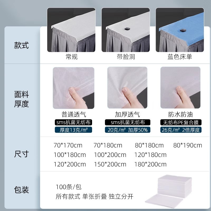 Одноразовые простыни Массаж односпальная кровать салон красоты Нетканый материал дышащий водонепроницаемый маслостойкий матрас одиночный 80*180 с отверстиями