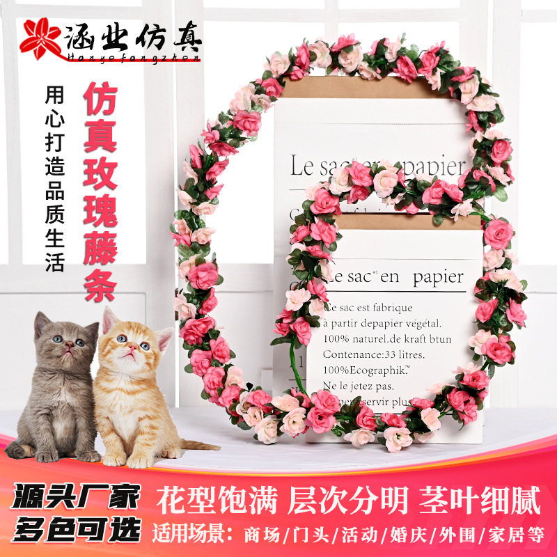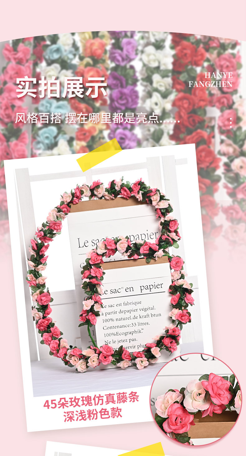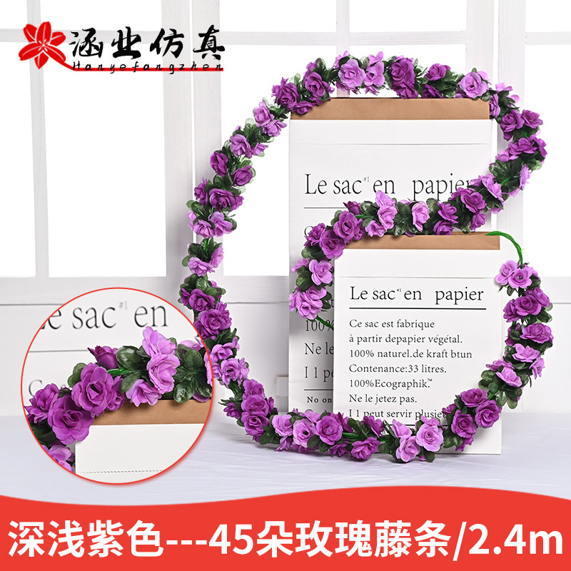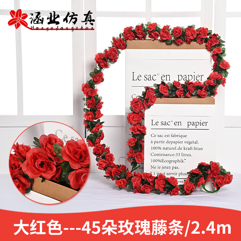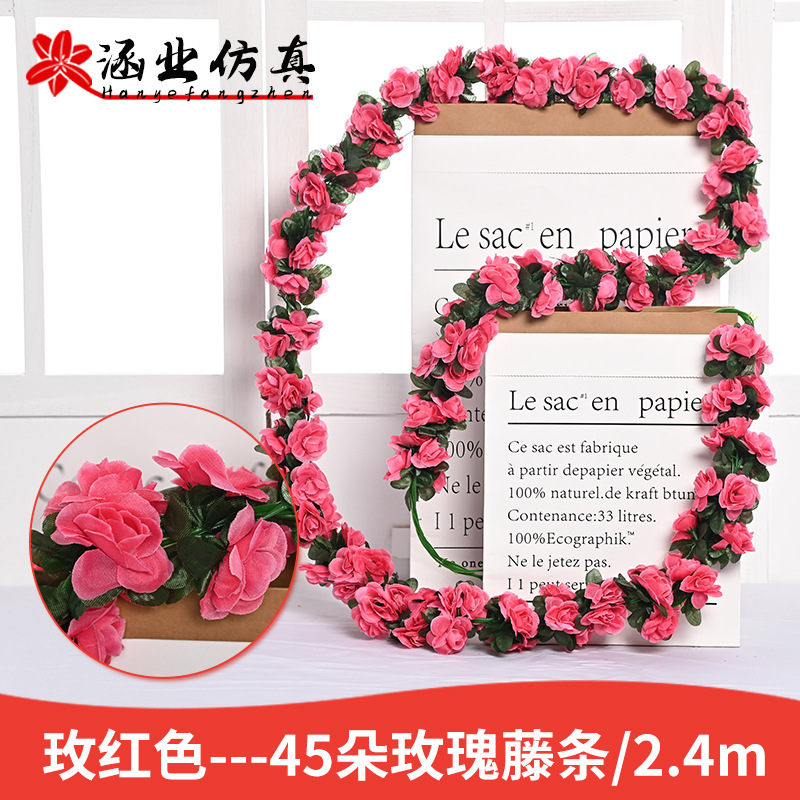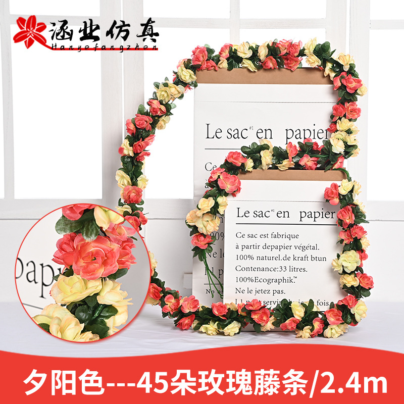 Оптовая продажа искусственных цветов для декора отелей, имитация цветочных лоз для маскировки воздуховодов, 45 головок искусственных розовых лоз.