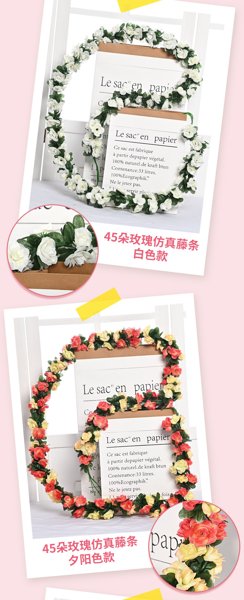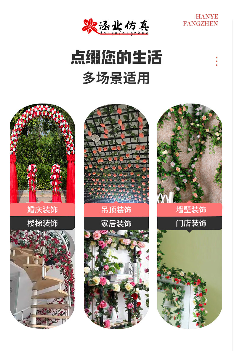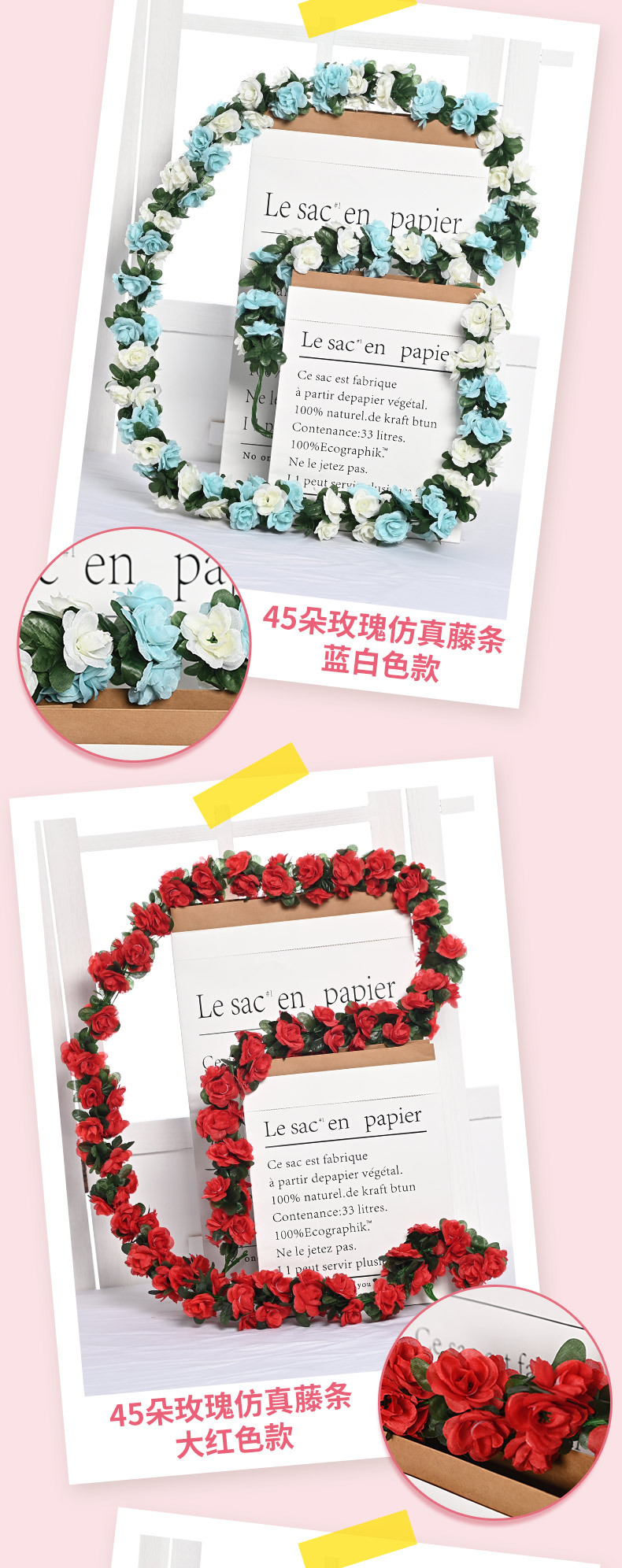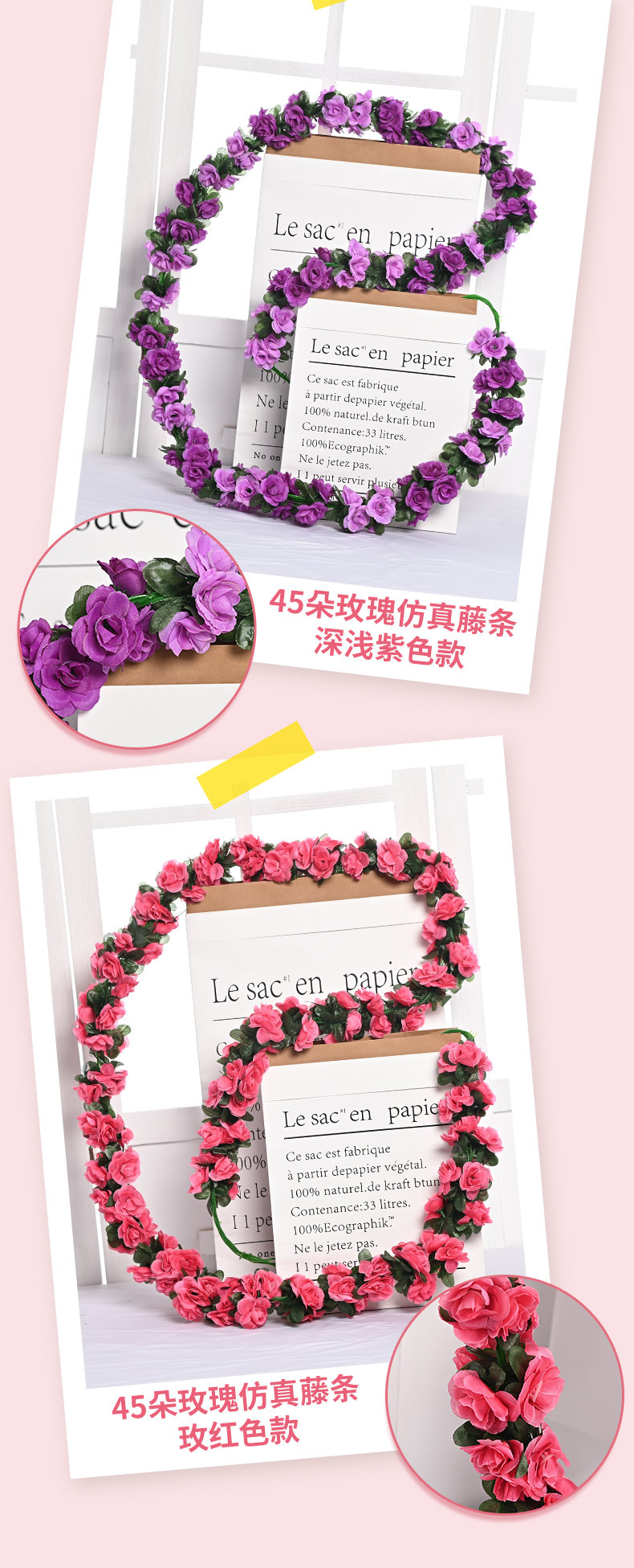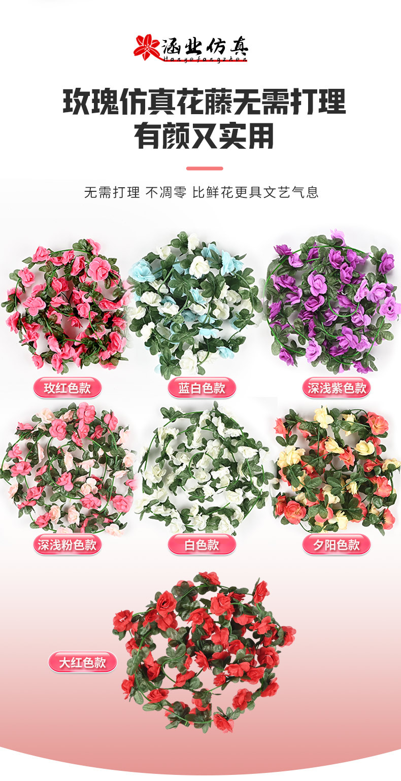 Оптовая продажа искусственных цветов для декора отелей, имитация цветочных лоз для маскировки воздуховодов, 45 головок искусственных розовых лоз.