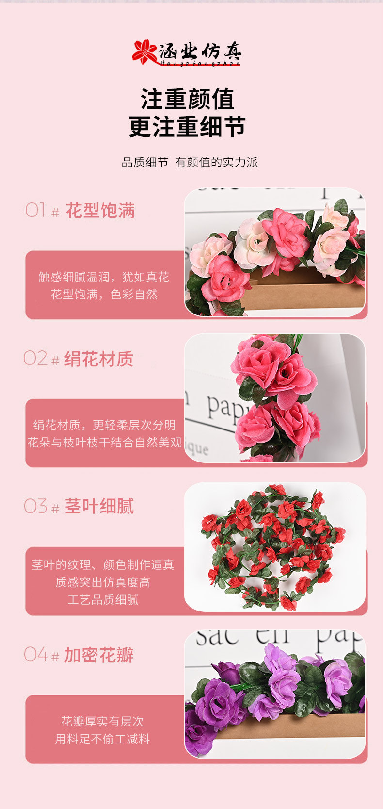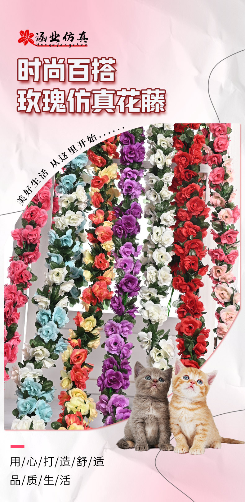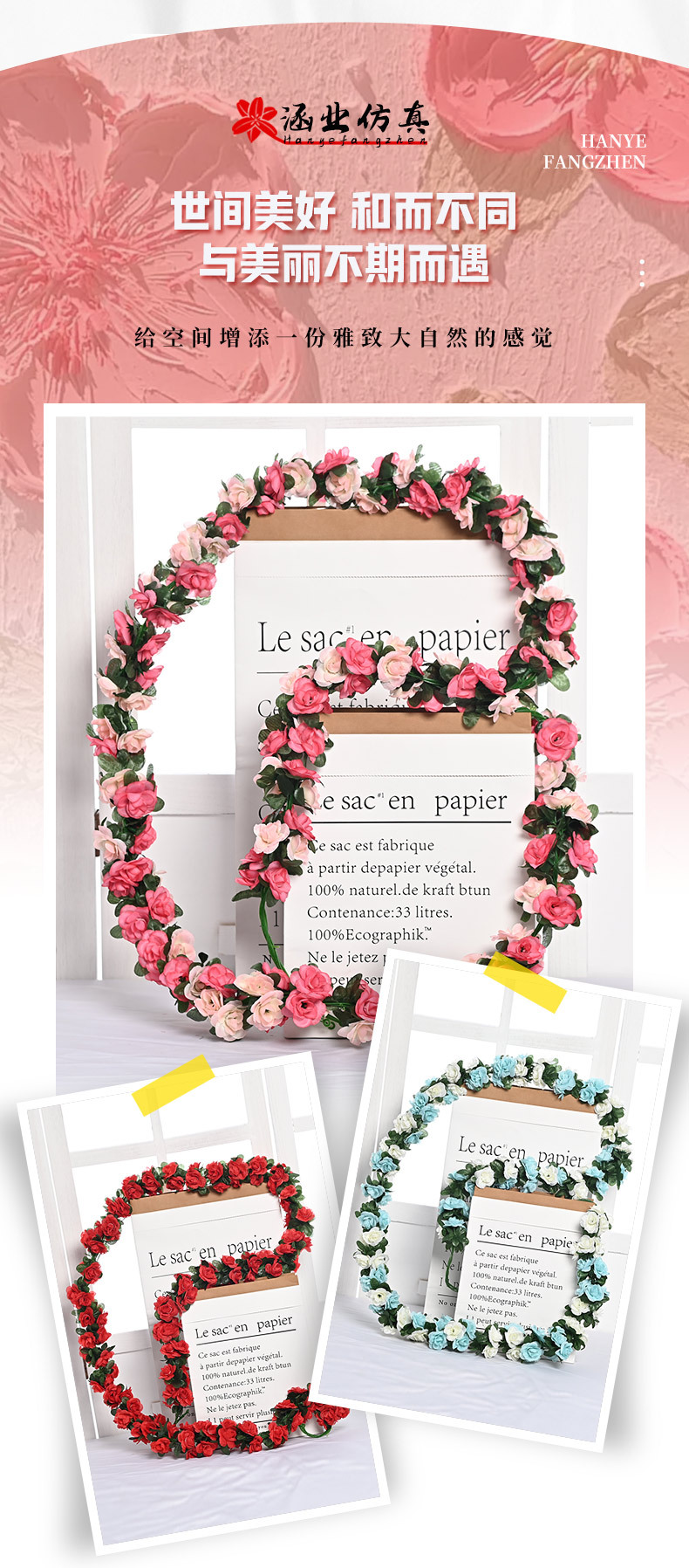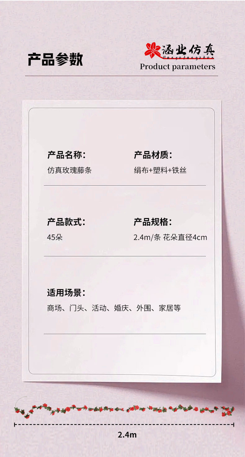 Оптовая продажа искусственных цветов для декора отелей, имитация цветочных лоз для маскировки воздуховодов, 45 головок искусственных розовых лоз.