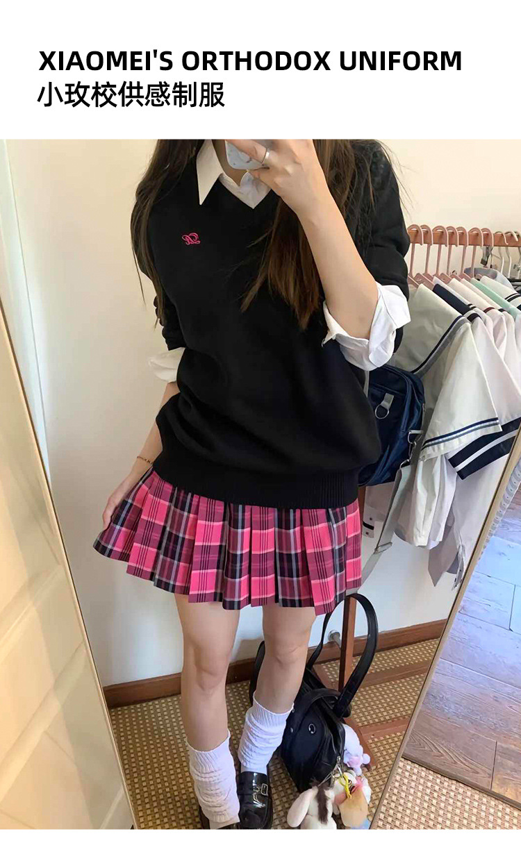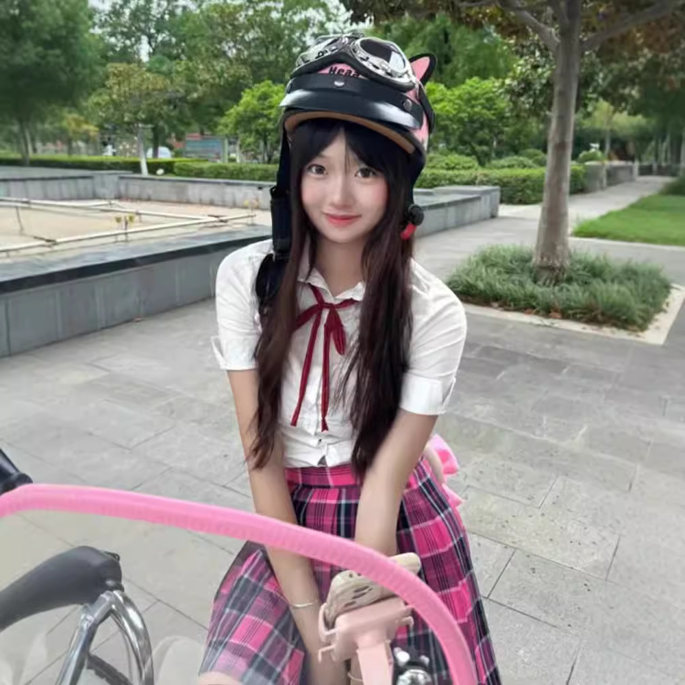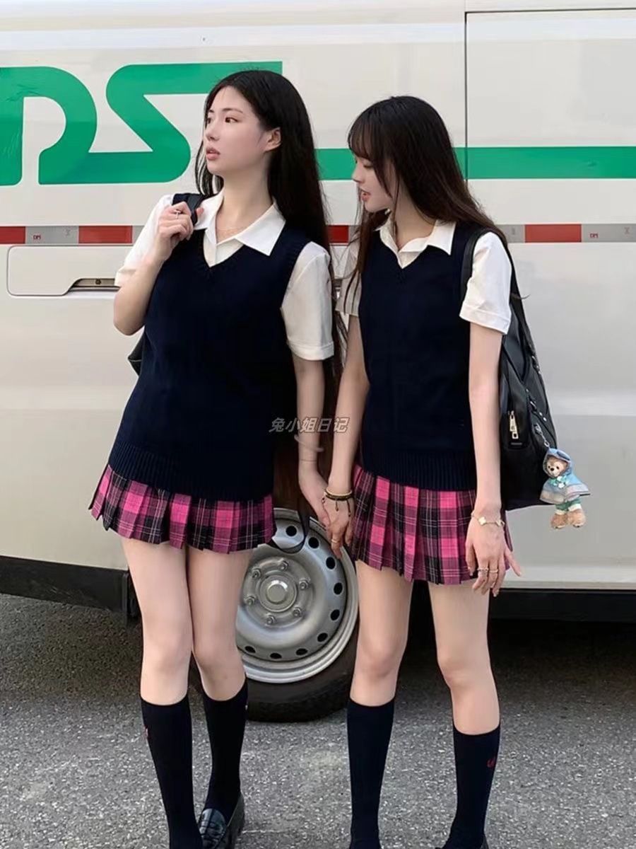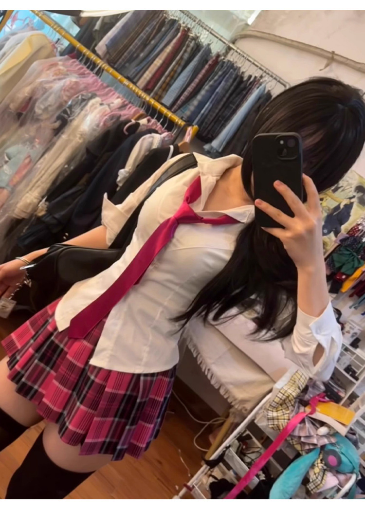 Спотовая стройная белая рубашка с короткими рукавами, дикая маленькая плиссированная юбка, оригинальная jk униформа