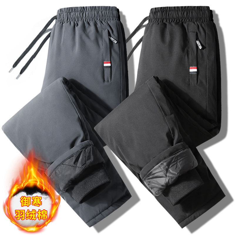 Пуховые хлопчатобумажные брюки мужские зимние хлопчатобумажные толстые снежные брюки повседневные приливные бренды носить холодные и морозостойкие теплые брюки мужские