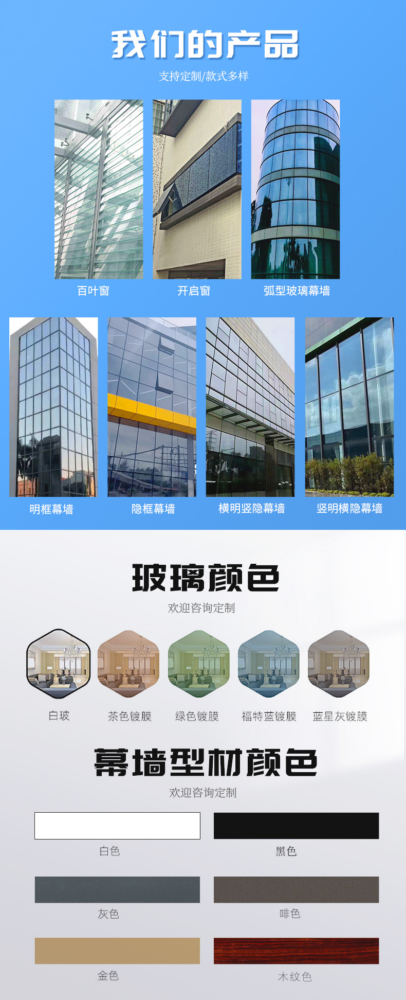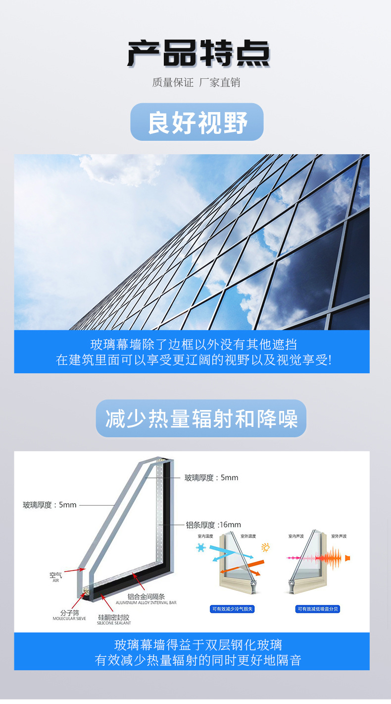 Среднее чистое стекло, стекло с покрытием, LOW-E (коричневый/зеленый/синий/серый/золотой) и т. д.