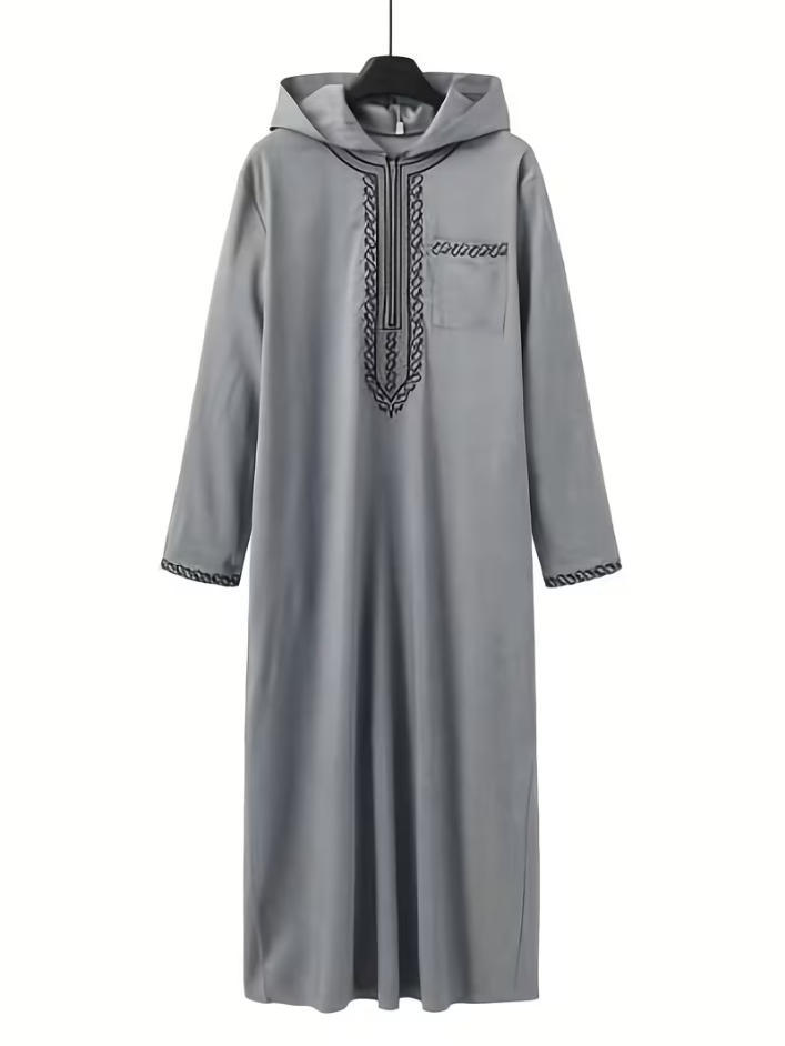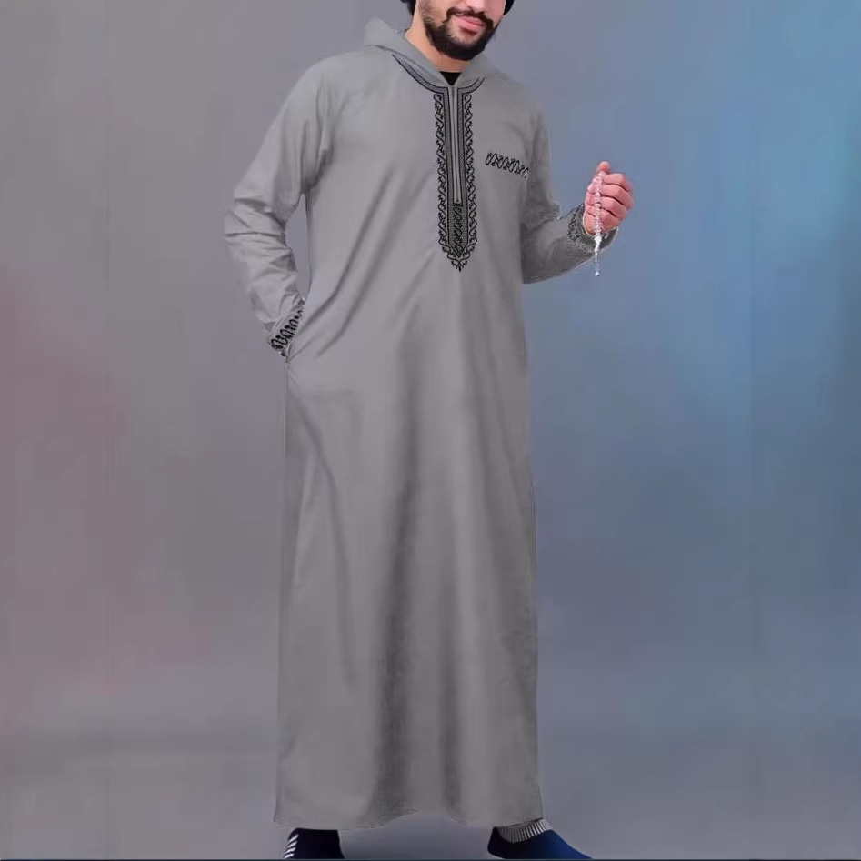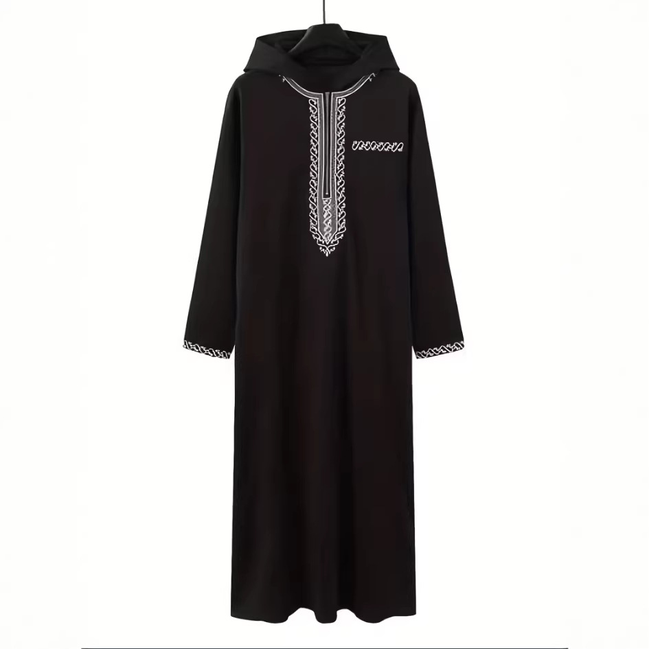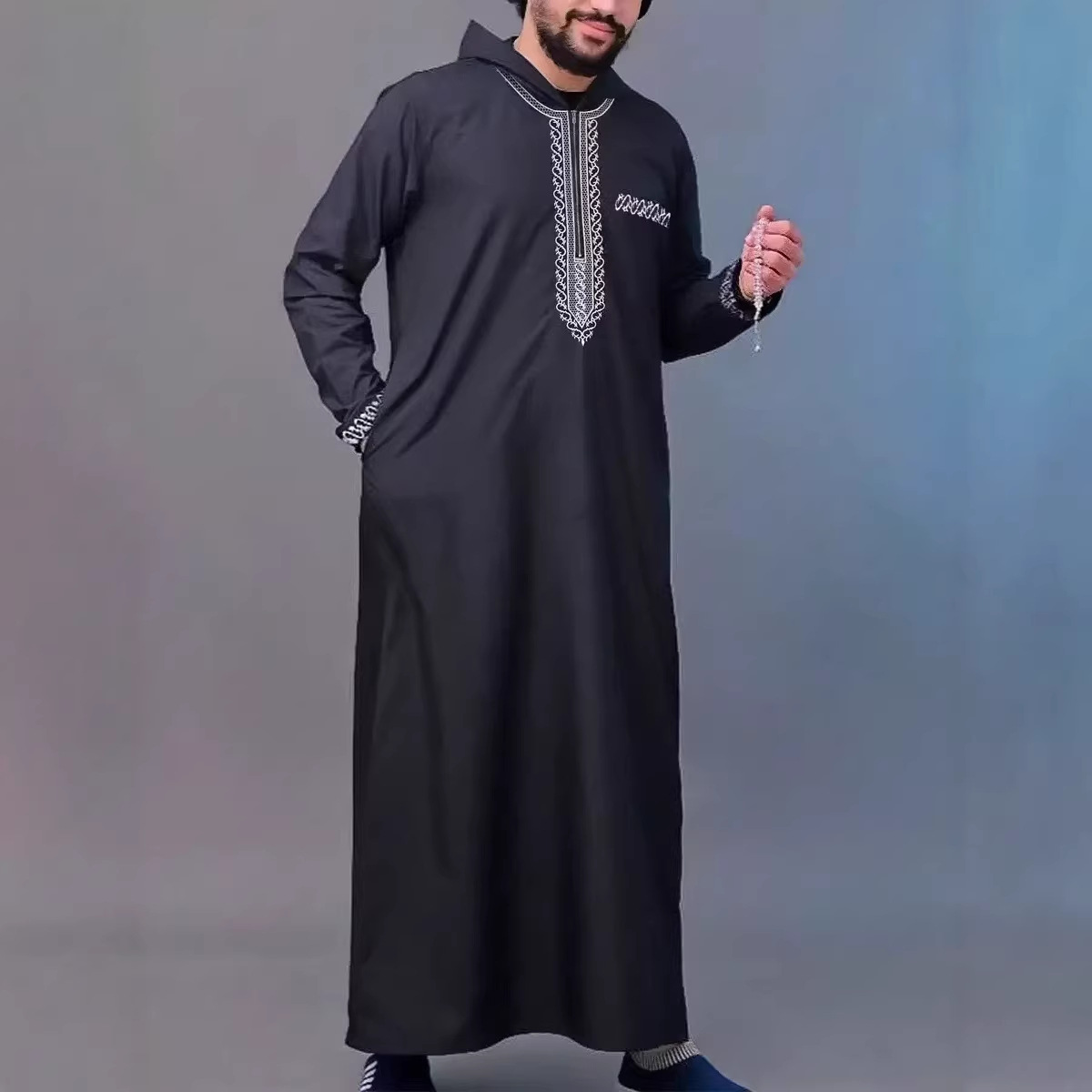 Новая мужская свободная халат-рубаха с капюшоном, весна 2026, роскошная вышивка, длинный рукав, этническая одежда, традиционный ближневосточный халат.