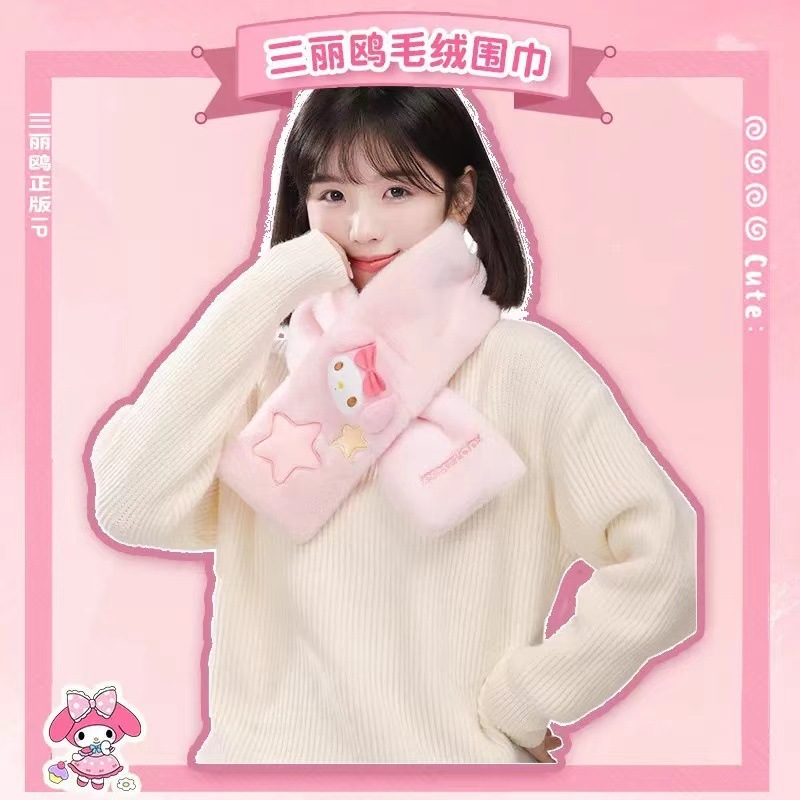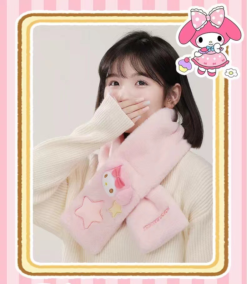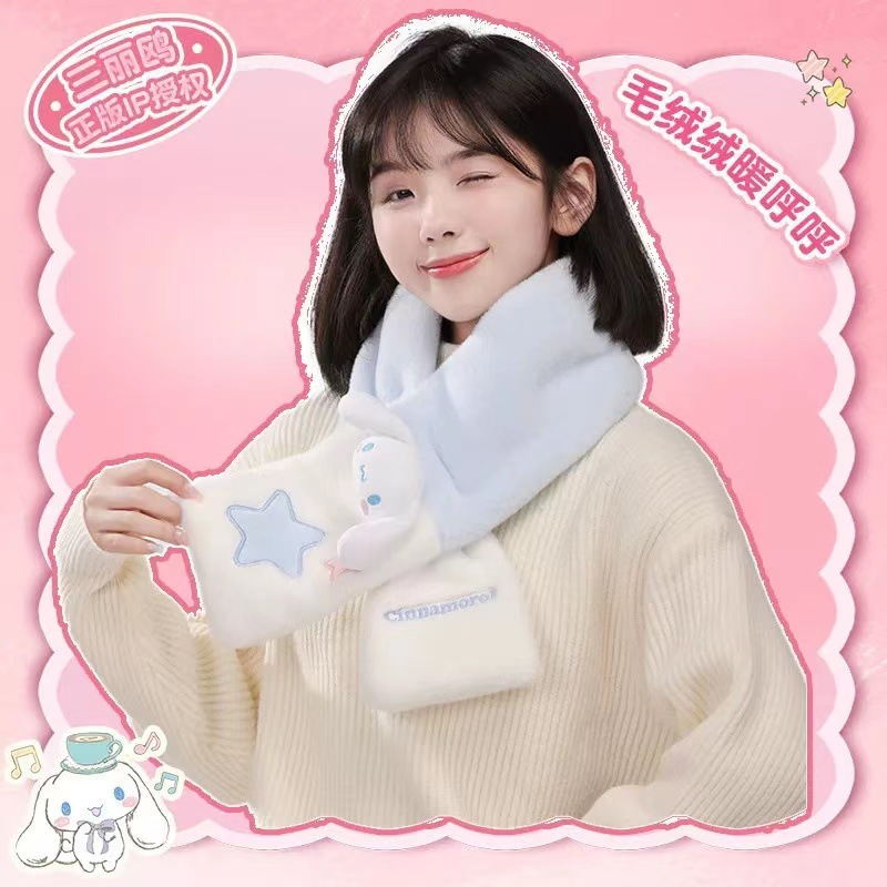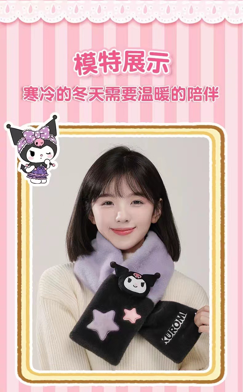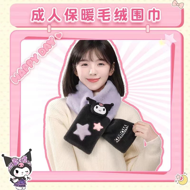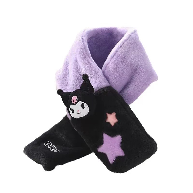 Оригинальный плюшевый шарф Sanrio в стиле пэчворк, теплый зимний шарф Kuromi Cinnamoroll для девочек, утолщенный и теплый, для осени и зимы.