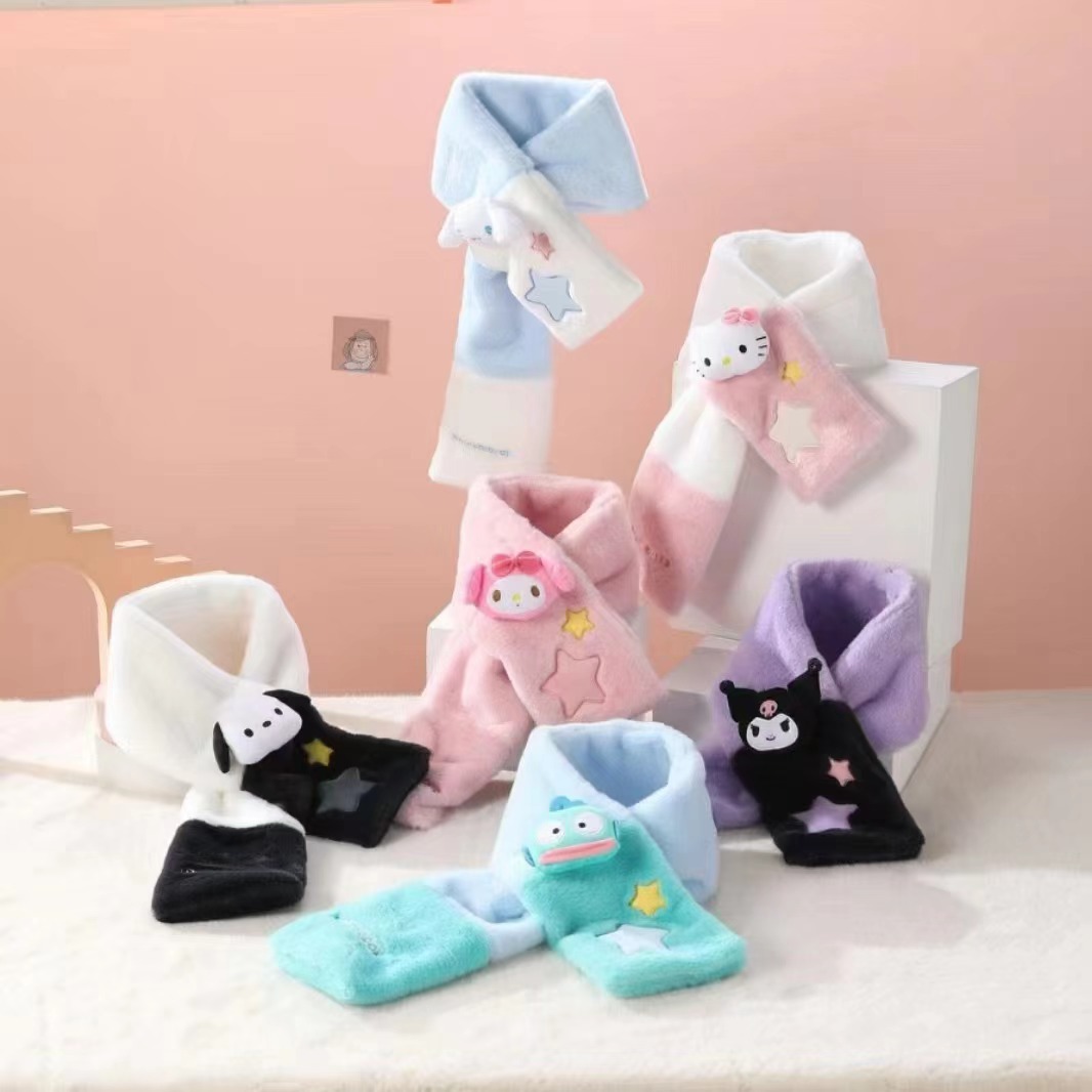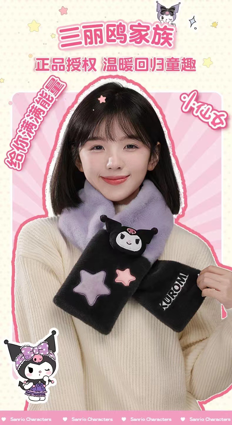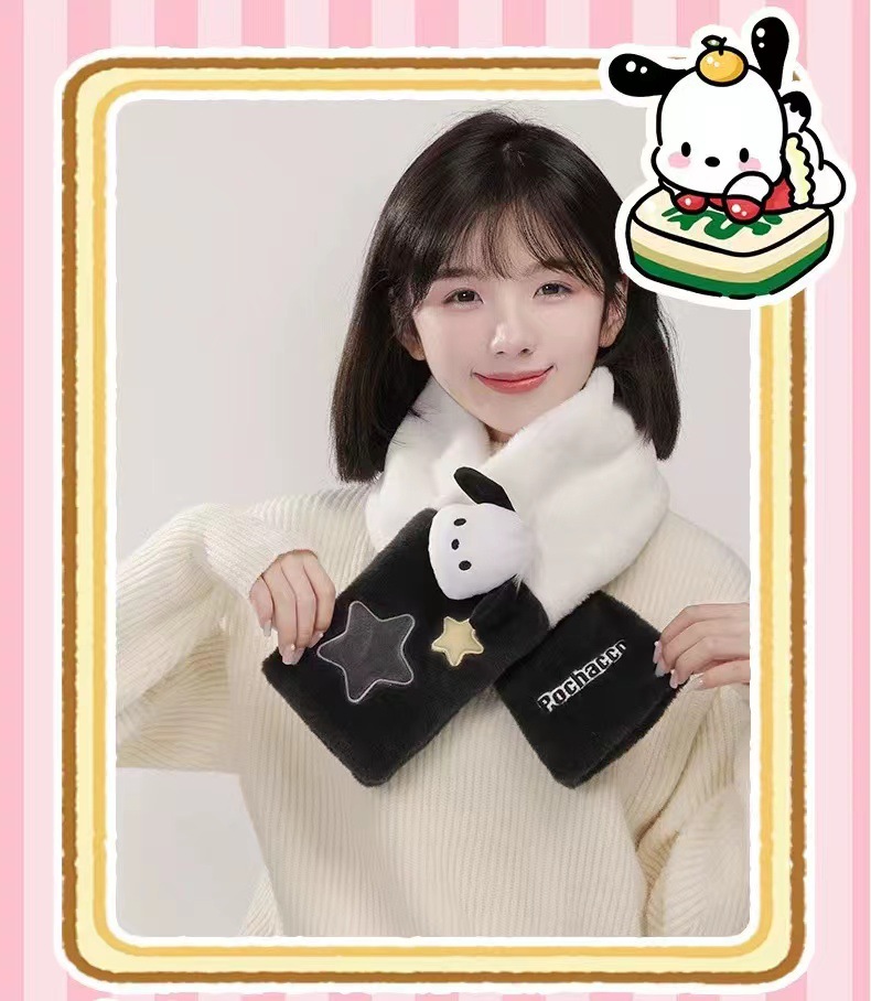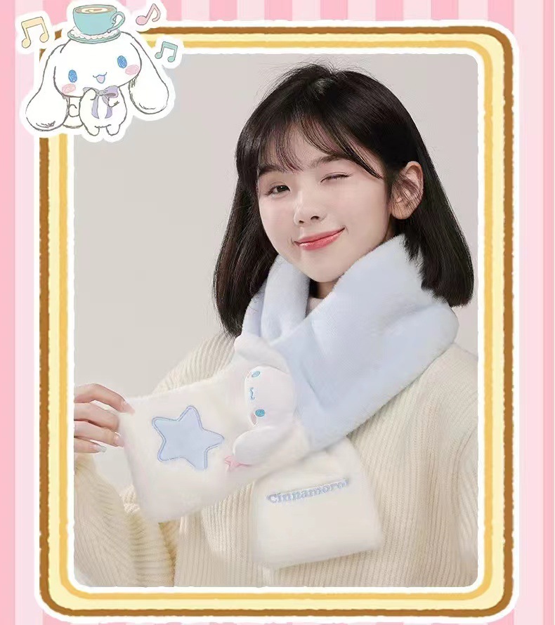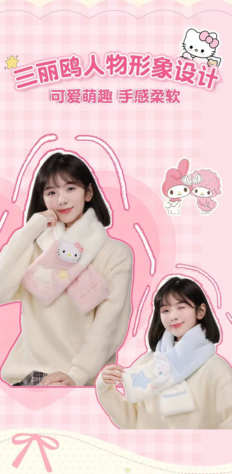 Оригинальный плюшевый шарф Sanrio в стиле пэчворк, теплый зимний шарф Kuromi Cinnamoroll для девочек, утолщенный и теплый, для осени и зимы.