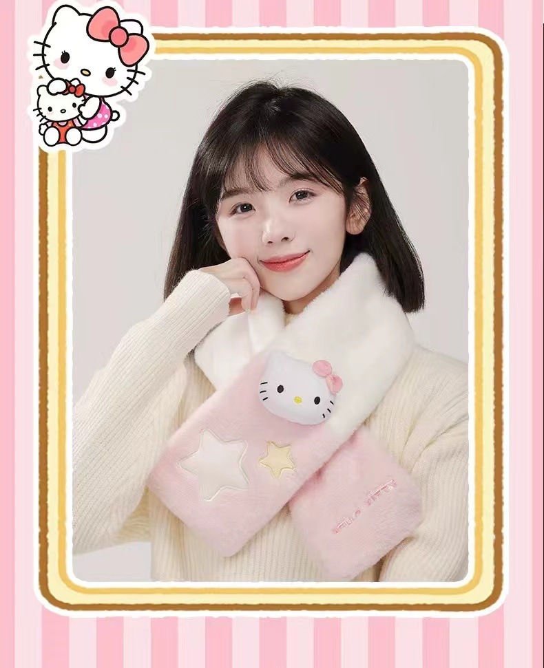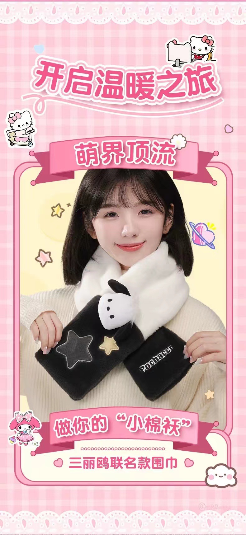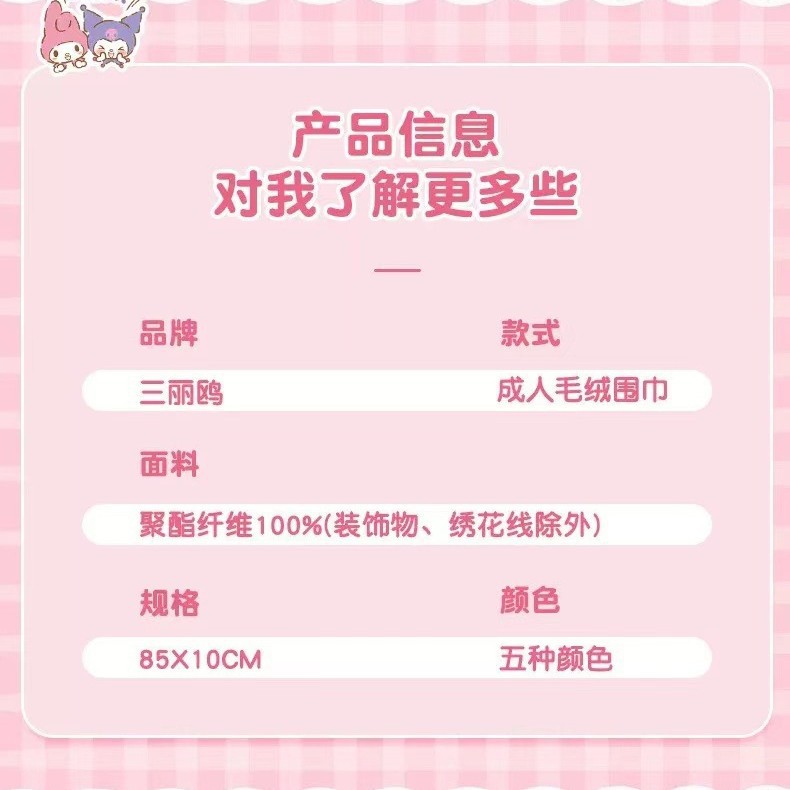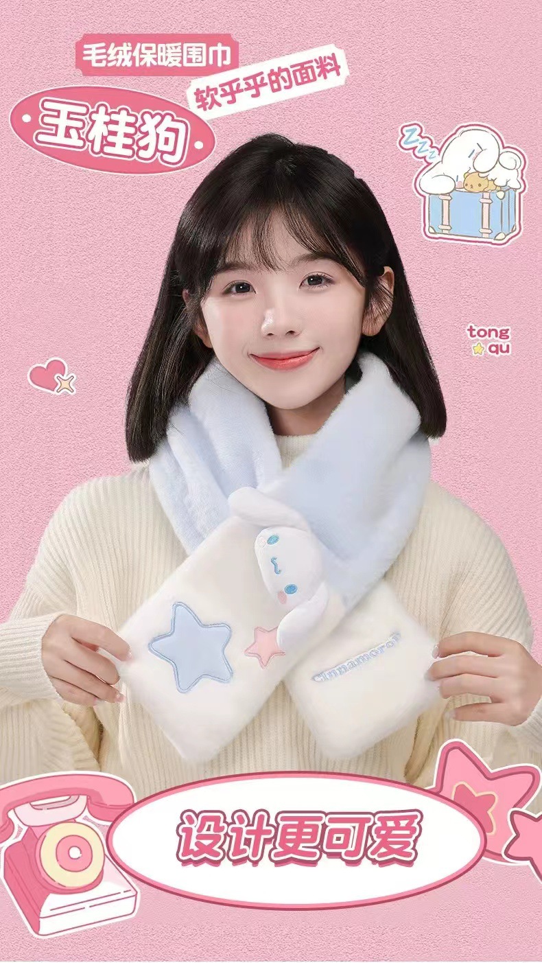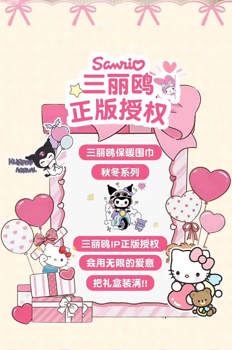 Оригинальный плюшевый шарф Sanrio в стиле пэчворк, теплый зимний шарф Kuromi Cinnamoroll для девочек, утолщенный и теплый, для осени и зимы.