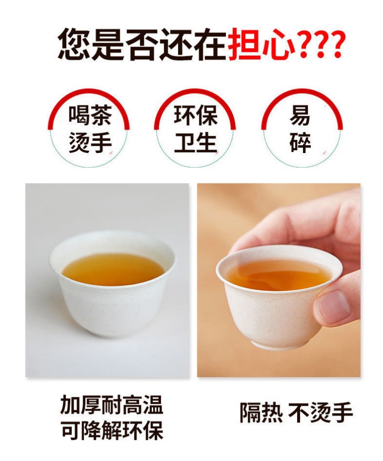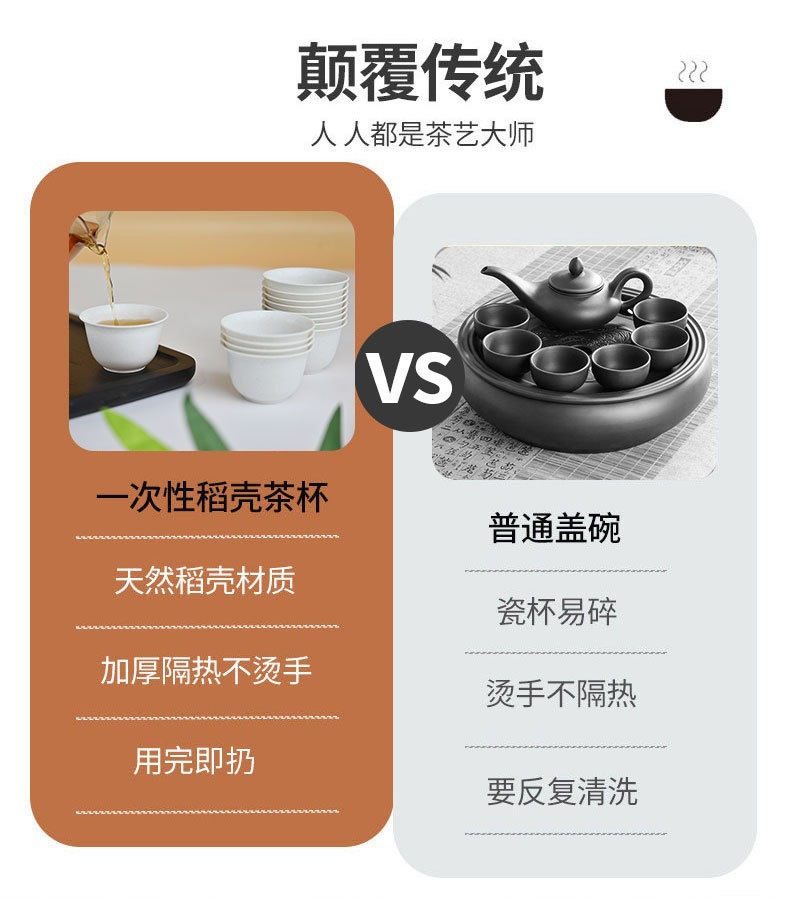 Оптовые чайные чашки для кунг-фу, маленькие чайные чашки, пищевые термостойкие жесткие чашки для дегустации чая, целая коробка чашек из рисовой шелухи, одноразовые чайные чашки