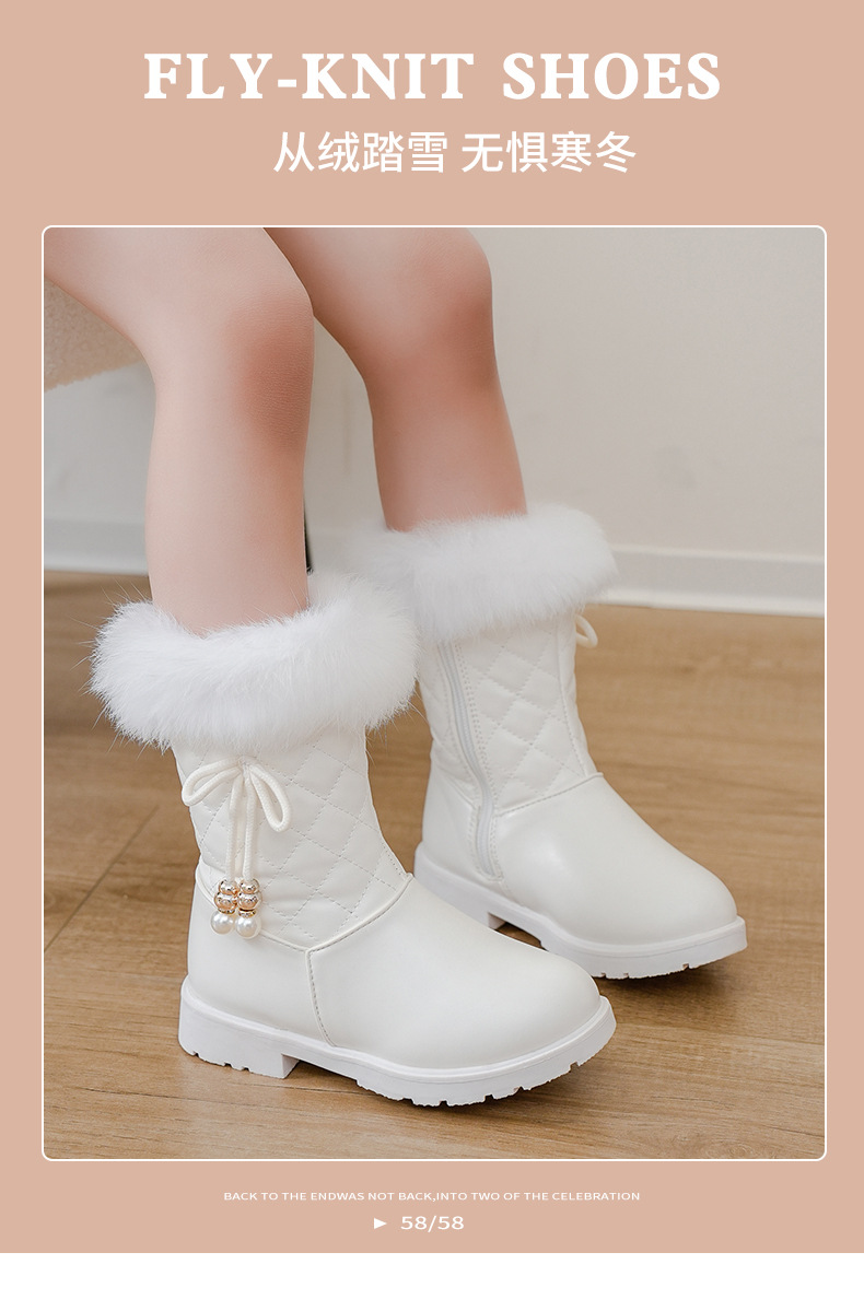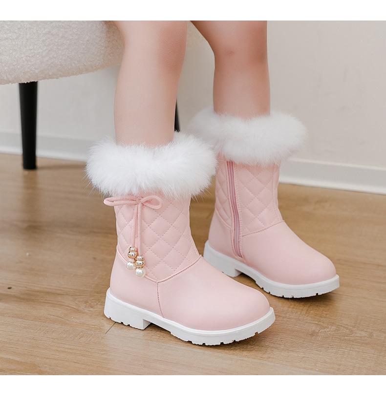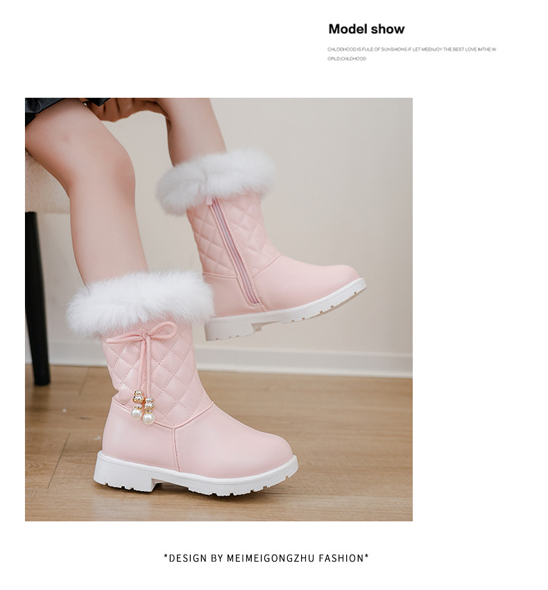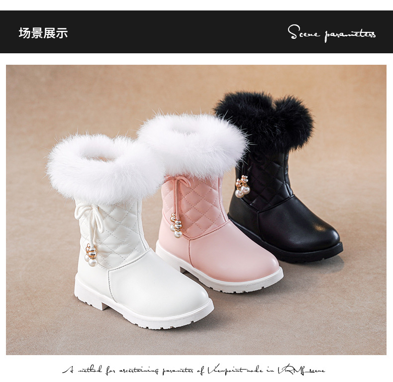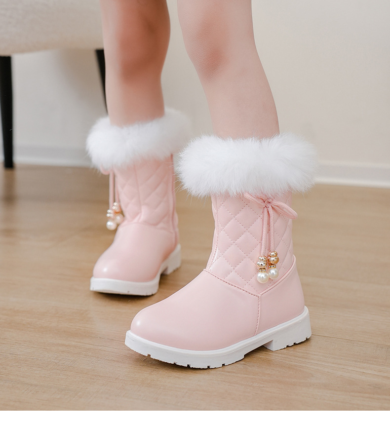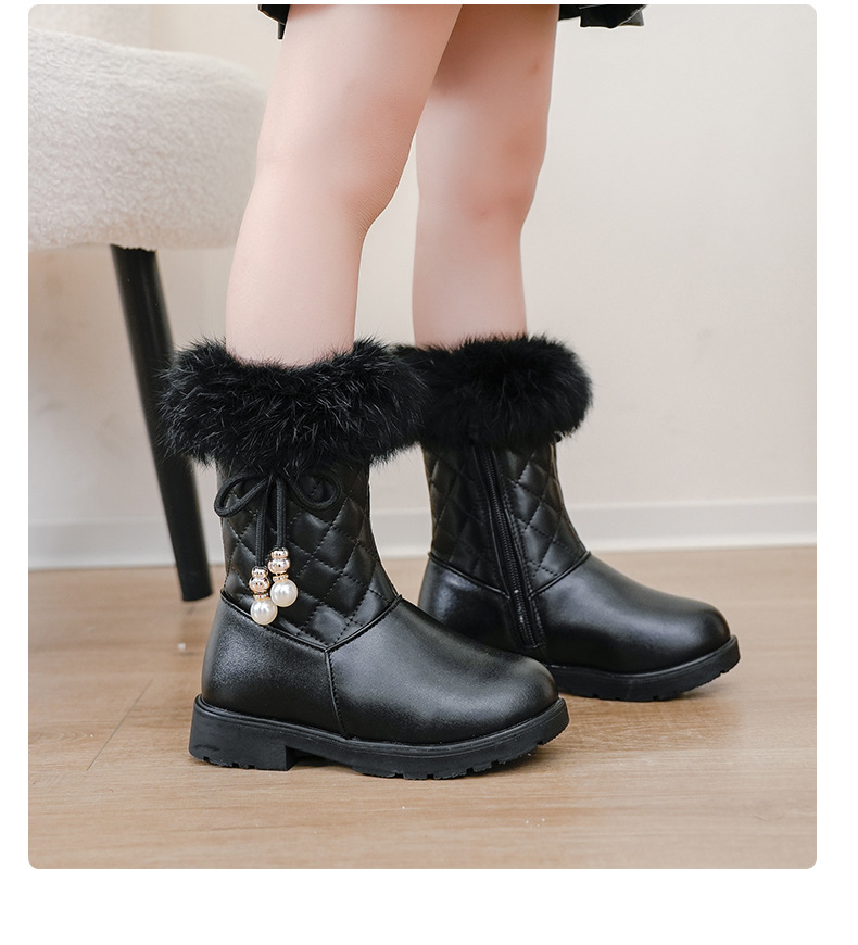 Детские сапоги, осень и зима, новинка 2025, зимние сапоги для девочек с кроличьим мехом, теплые детские кожаные сапоги принцессы средней икры