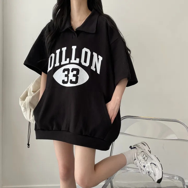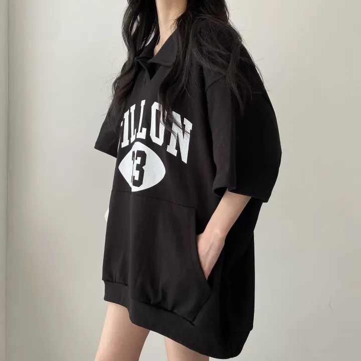 Clothing черный топ ins средняя длинная хлопчатобумажная футболка женская летняя приливная бренд с короткими рукавами карманный сетка красный корейский polo