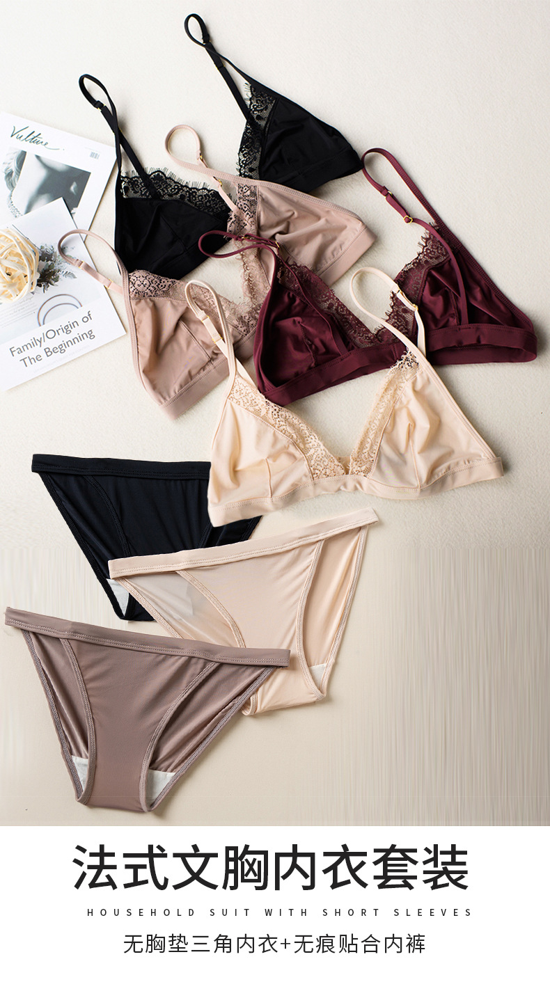 Кружевной сексуальный набор нижнего белья Французское белье дышащее без нагрудного коврика Ночной клуб секс-клуб кружевной бюстгальтер V-образный