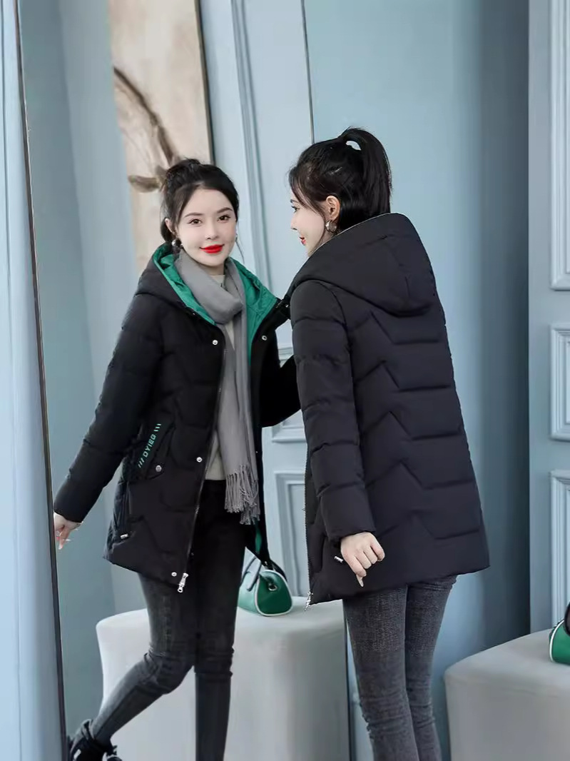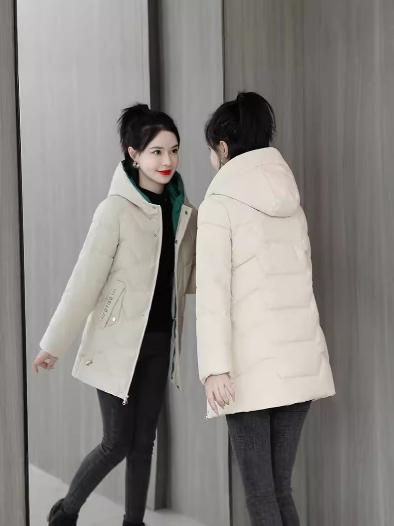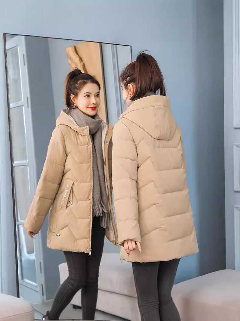 Популярная женская куртка на хлопковой подкладке, средней длины, новая модель зимы 2025 года, стильная, утепленная, хлопковое пальто с капюшоном, прямые продажи от производителя, бесплатная доставка.