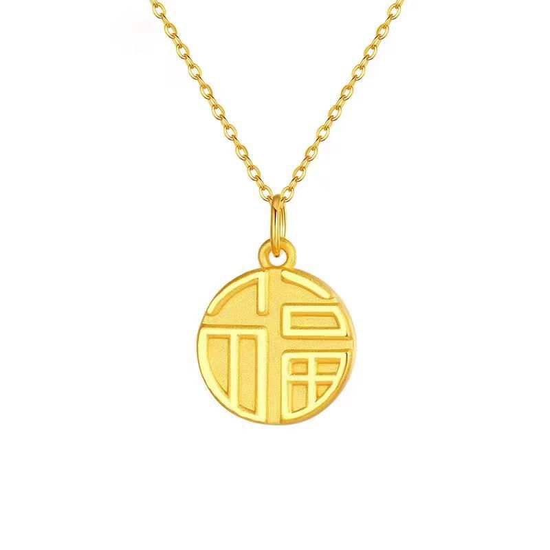 Подвеска Shuibeijin из чистого золота 999 пробы, 3D жесткая золотая цепочка на ключицу, трендовый подарочный набор для косметической индустрии, популярный предмет в прямом эфире