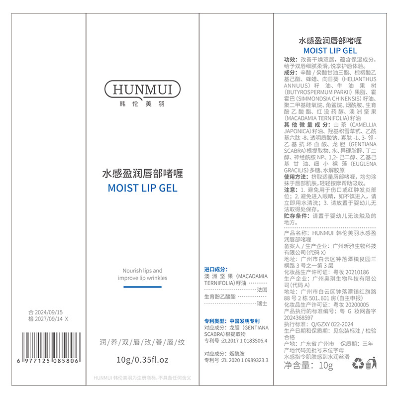Гель для губ Han Lun Meiyu с ощущением воды для губ, осветляет линии для губ, восстанавливающие сухие губы, бальзам для губ, сыворотка для губ