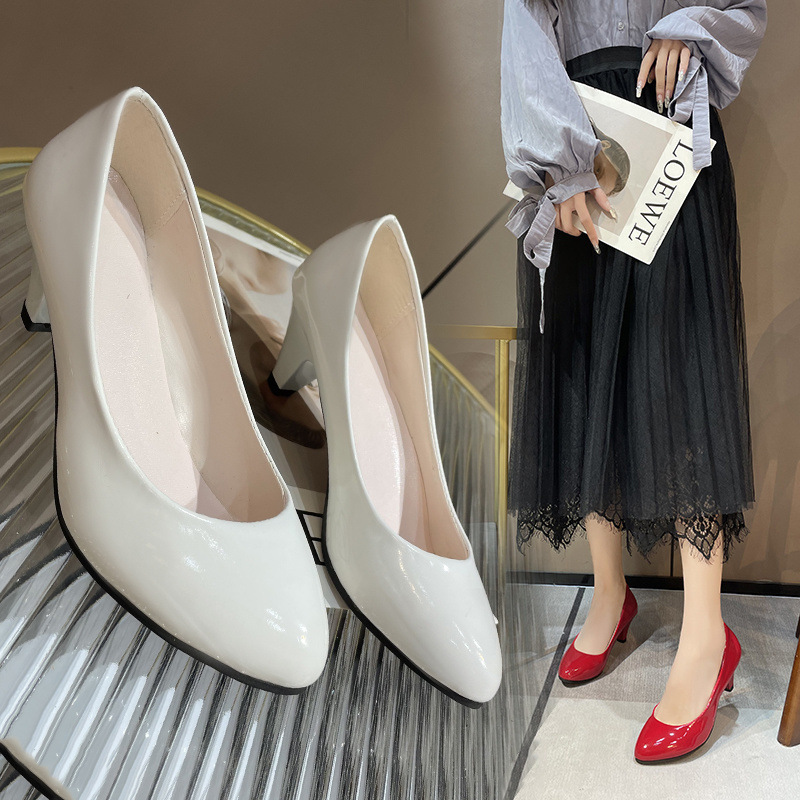Одиночная обувь большого размера женский 2024 новый остроконечный мелкий рот четыре сезона одиночные туфли модные толстые каблуки на каблуках женская обувь большого размера рабочая обувь большого размера