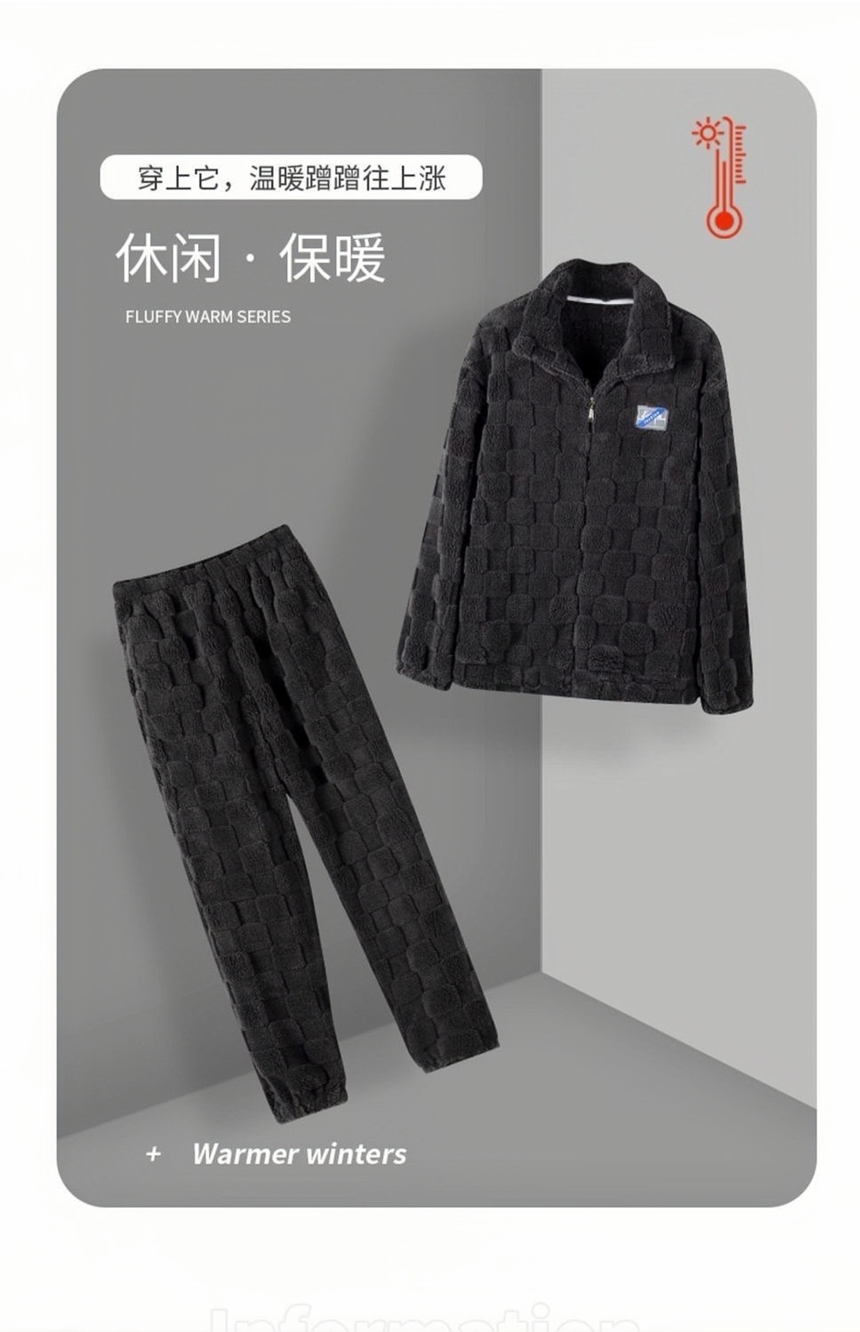 Мужские пижамы, модные, на молнии, утолщенные, на флисовой подкладке, из кораллового флиса, теплый фланель, осенне-зимний стиль, новая модель для мужчин и подростков.