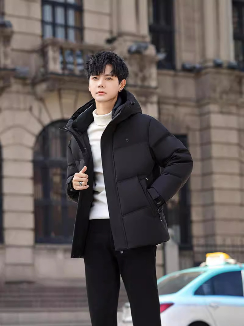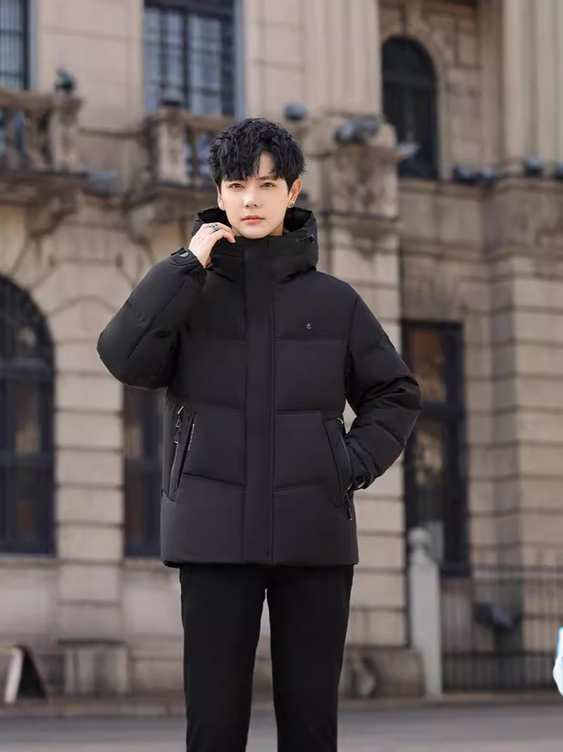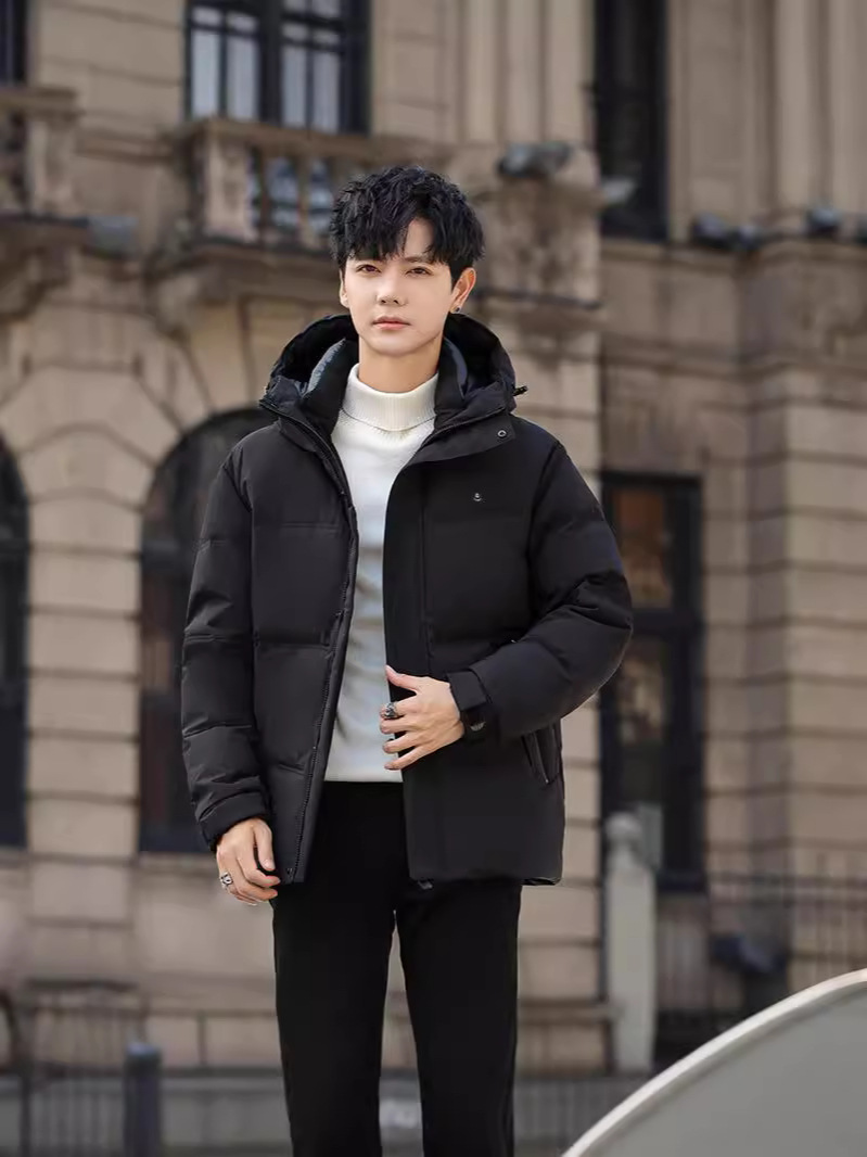 Мужская куртка-пуховик 885 с капюшоном, наполнитель — гусиный пух, прямые поставки с фабрики, цена 388 юаней, модель 2025 года