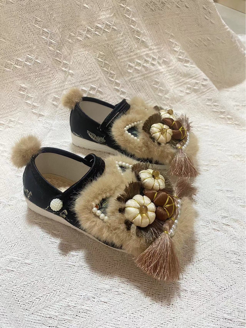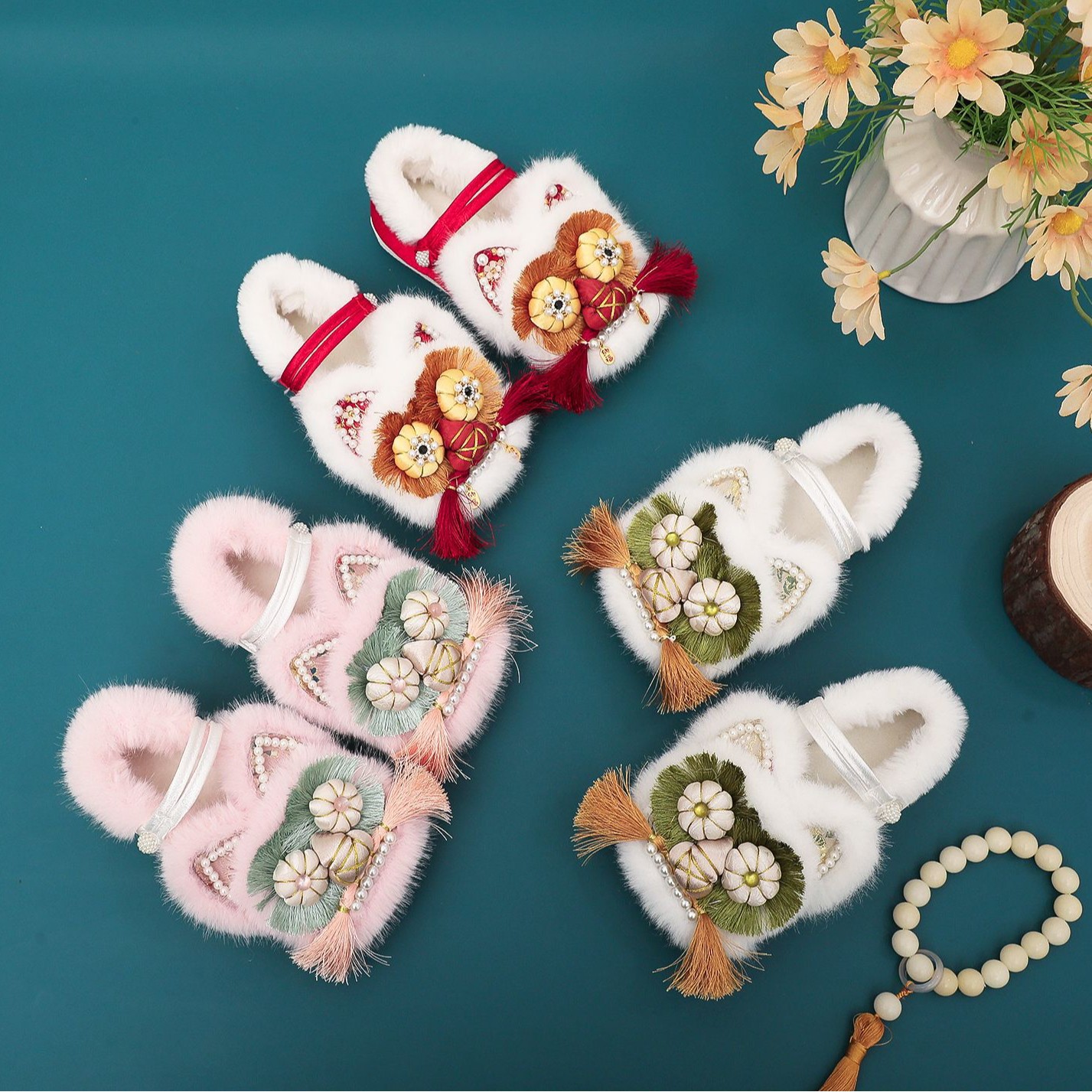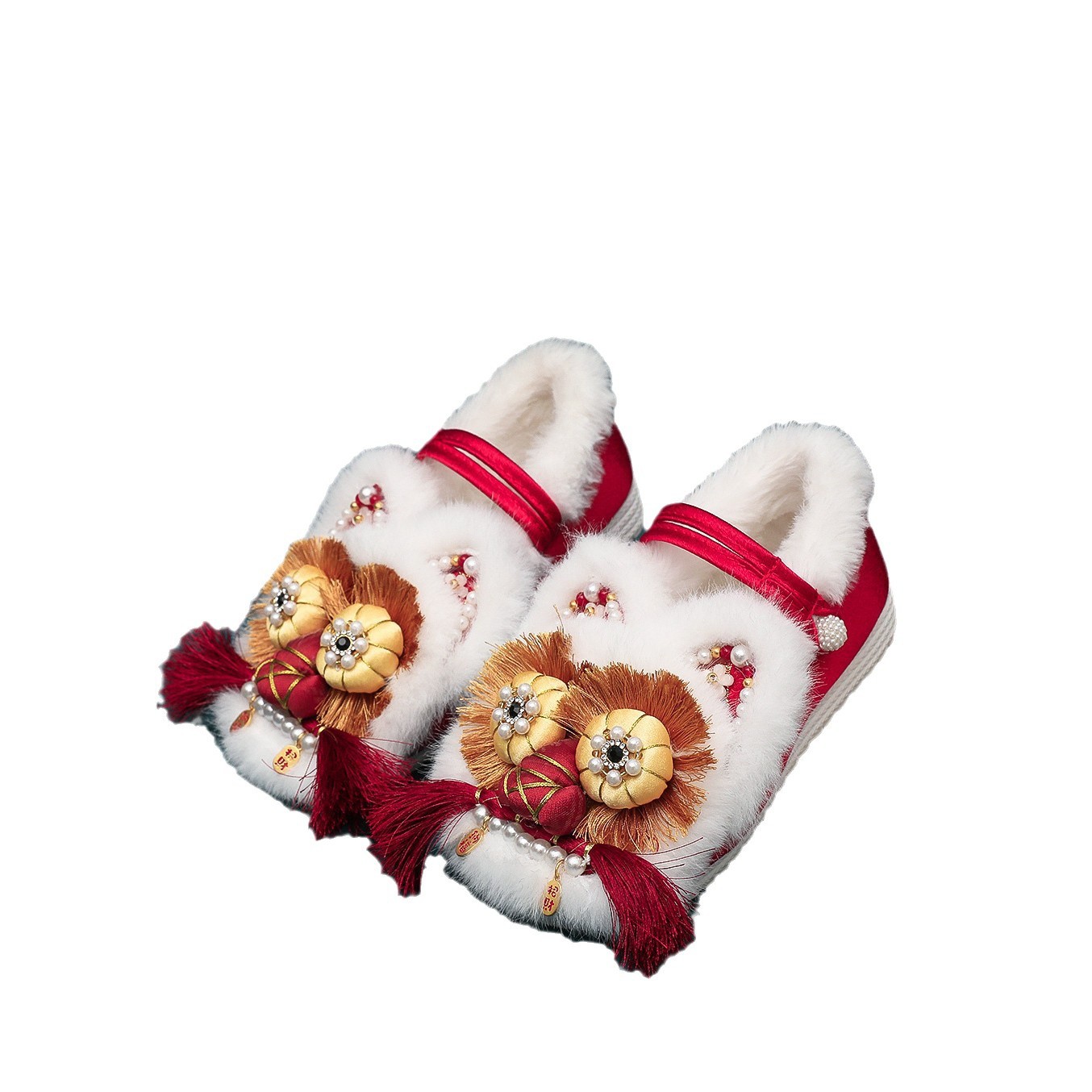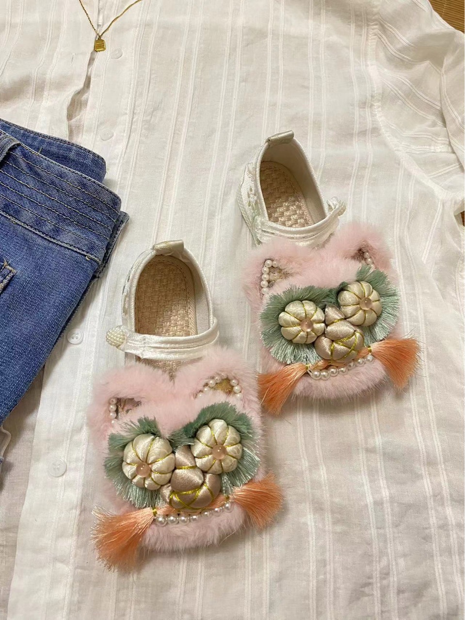 Hanfu туфли с тигровой головой одиночные туфли детские туфли с тигровой головой 2024 новая национальная мода ретро этническая детская обувь с плоским дном