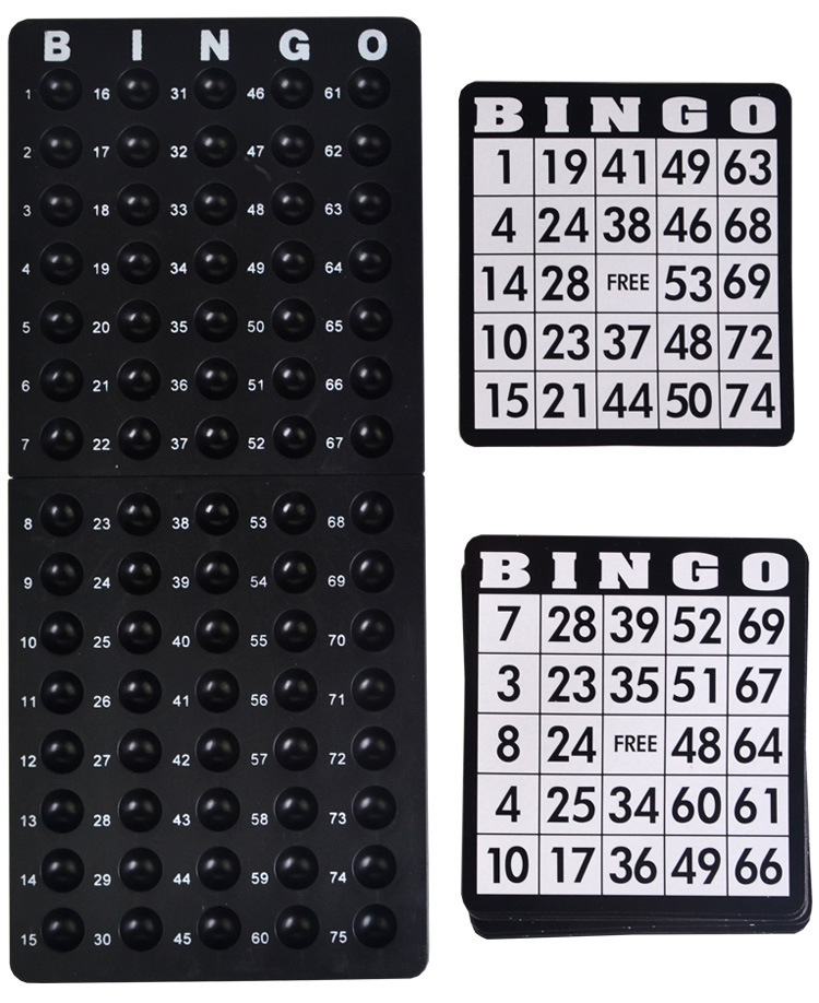 5x5的卡上有24个数字加上一个空格,每张卡上的数字也是随机分布的。一般有上千张卡片可供游戏者选择。有的制造商印制了6000张不同的卡片,有的可以提供9000张不同的卡片。不同场次的游戏中,不同号码的卡片上印制的号码可以是一样的,比如1252号卡片,在同样的位置上的数字是一样的。也就是说,因为每次叫的号会不同,所以同样号码的卡片在第一场的游戏中没中奖,但有可能在下一场游戏中中奖