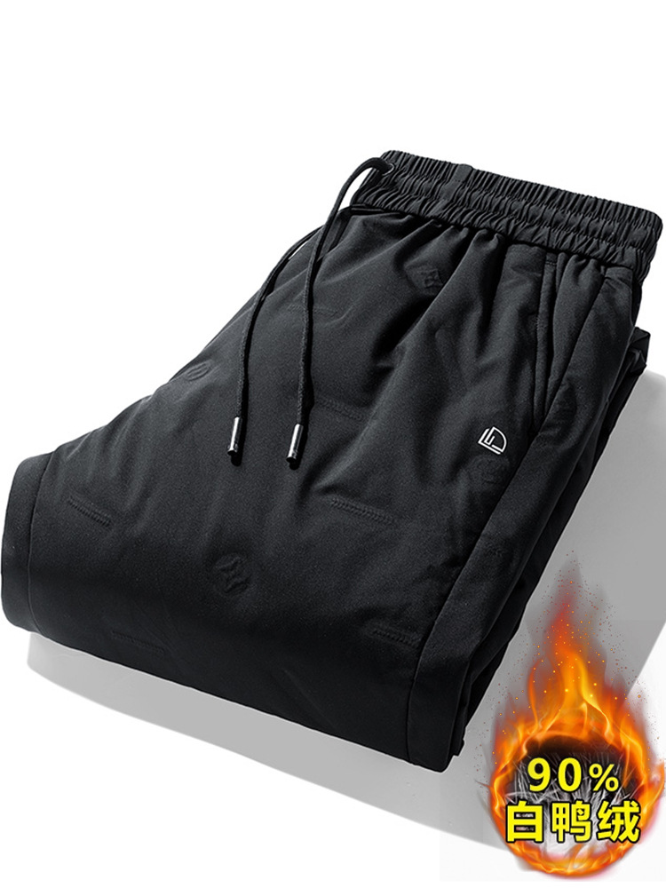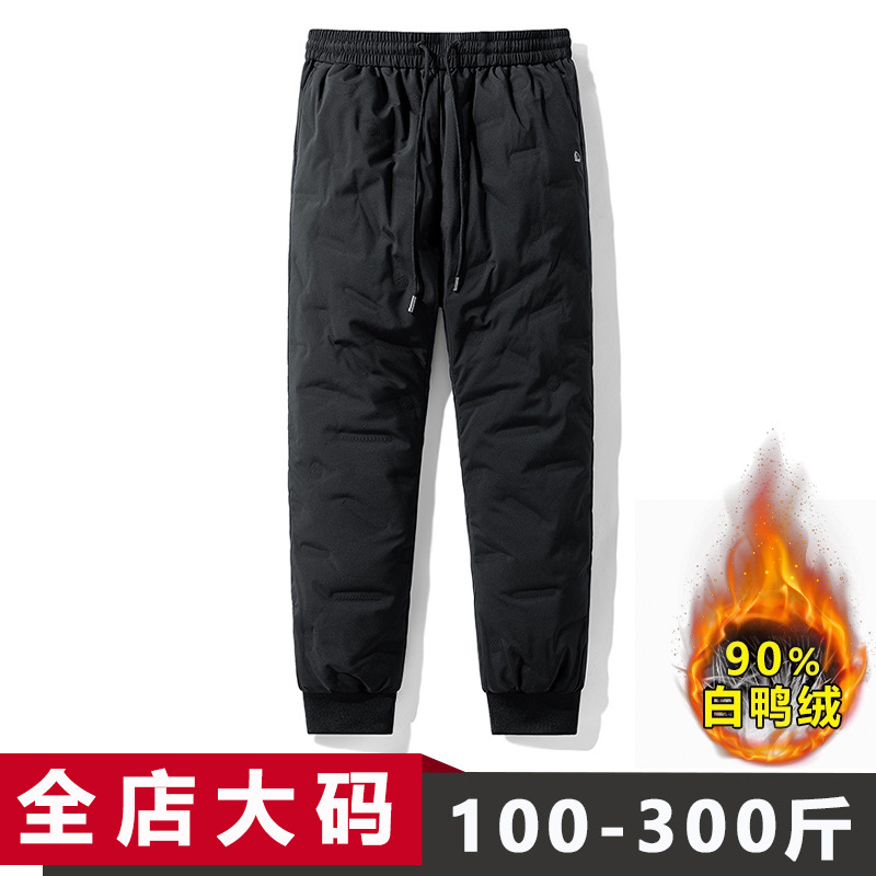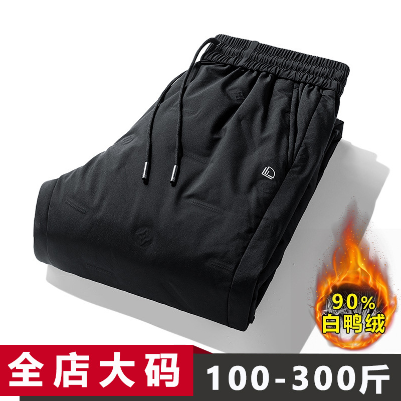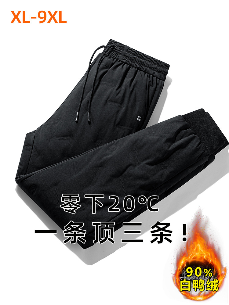 Мужские пуховые брюки больших размеров, новинка 2024 года, зимняя верхняя одежда, деловые повседневные брюки, утепленные теплые леггинсы на утином пуху
