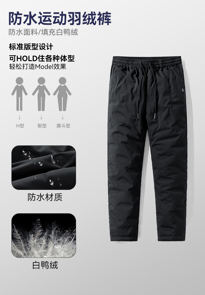 Черные пуховые брюки 2363 (стиль с штанинами) [новый национальный стандарт, 90% белого утиного пуха]; Черные пуховые штаны 2363 (прямой крой) [новый национальный стандарт, 90% белый утиный пух]