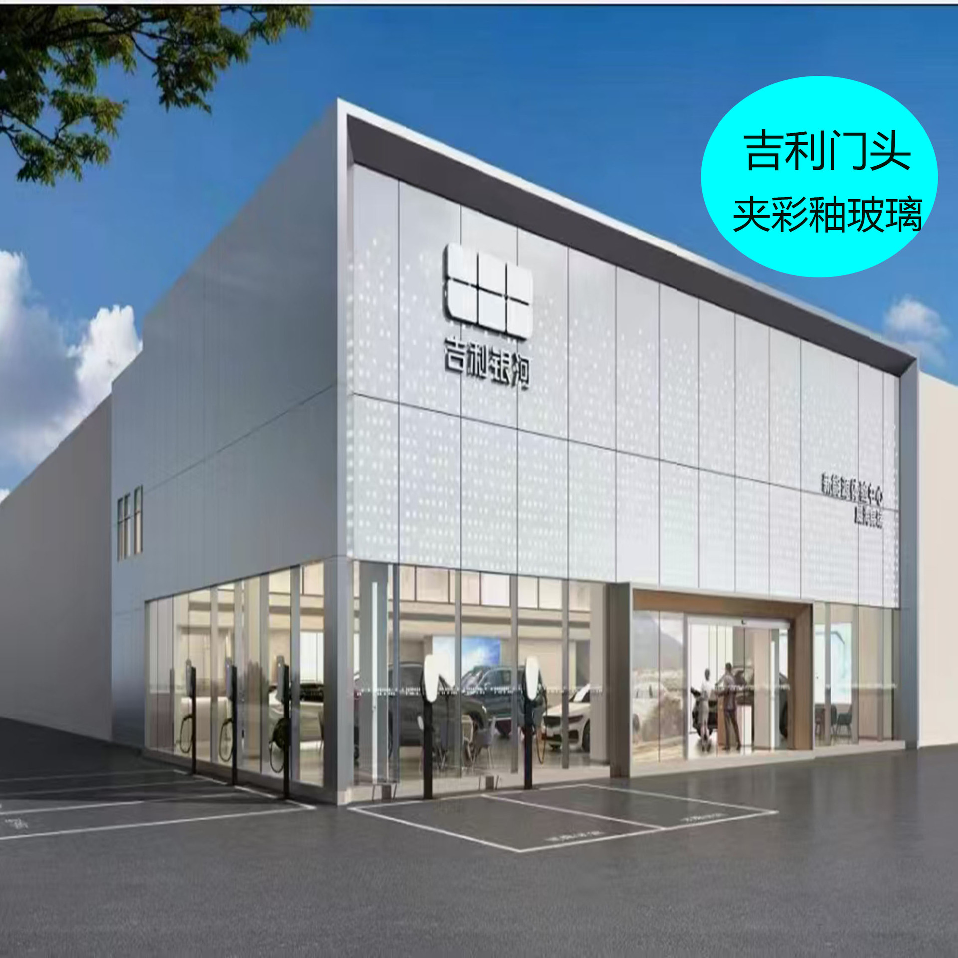 Производитель ламинированного стекла с индивидуальным цветным градиентным рисунком, ламинированная стеклянная стена с точечным покрытием, дверь 4S, индивидуальный дизайн.