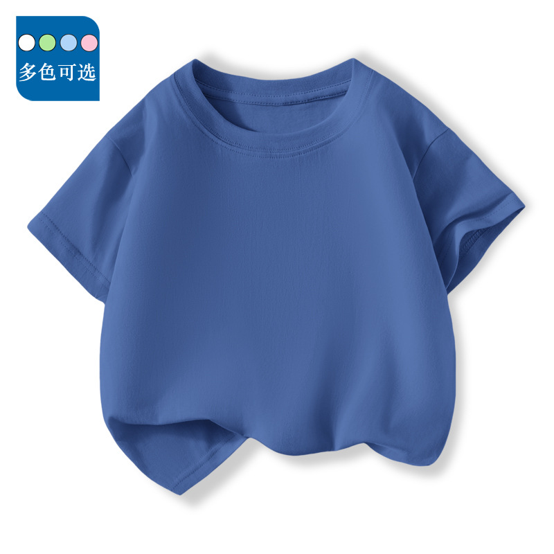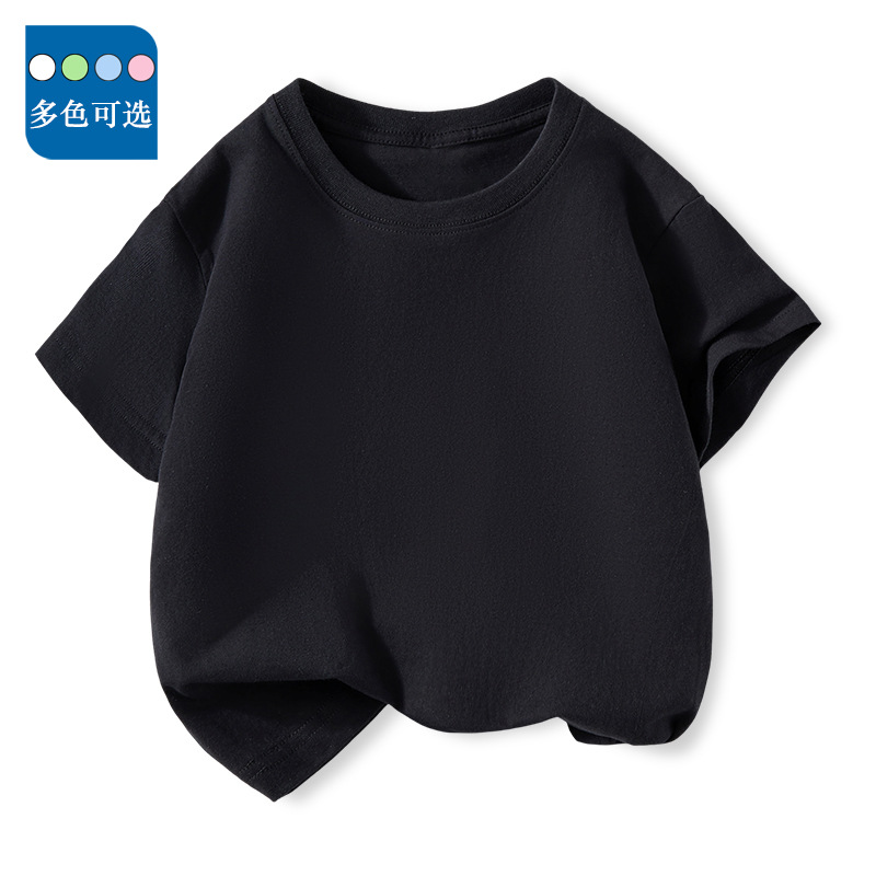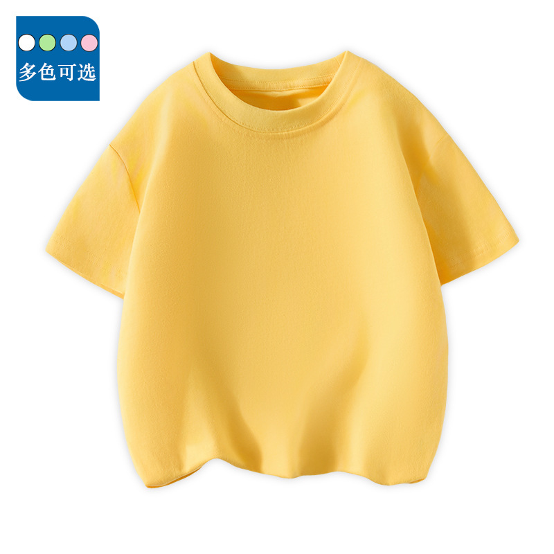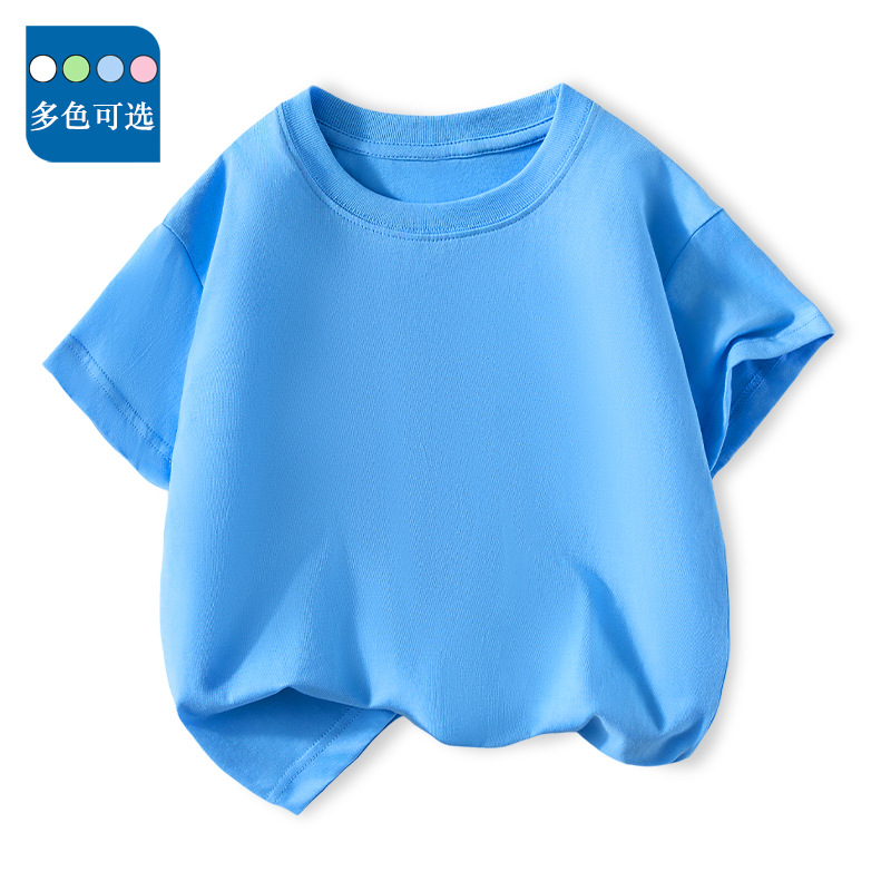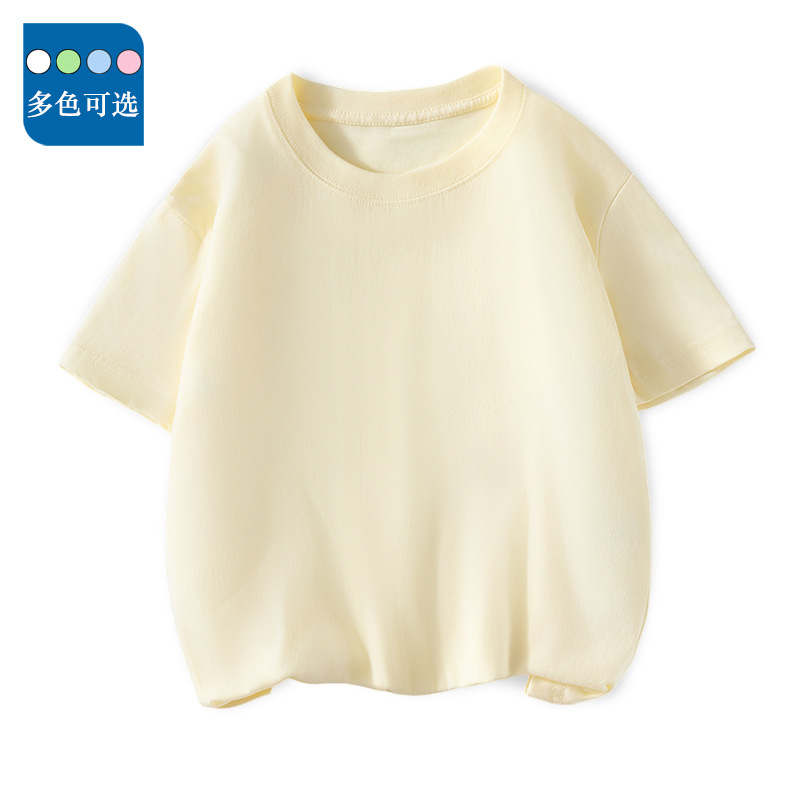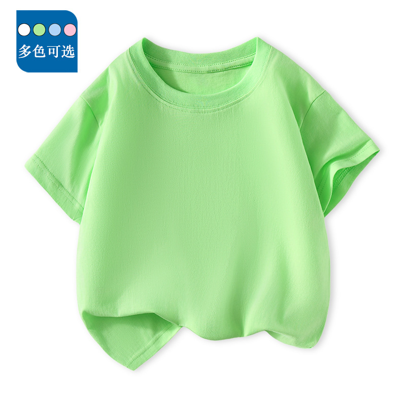 Детская футболка с короткими рукавами из хлопка летом сплошной цветной круглый воротник для мужчин и женщин с дикими топами для девочек с половиной рукава оптом прилив