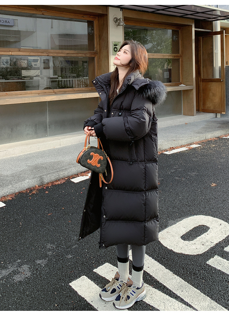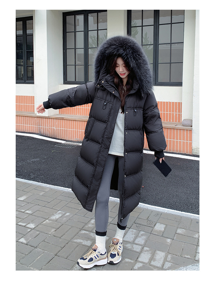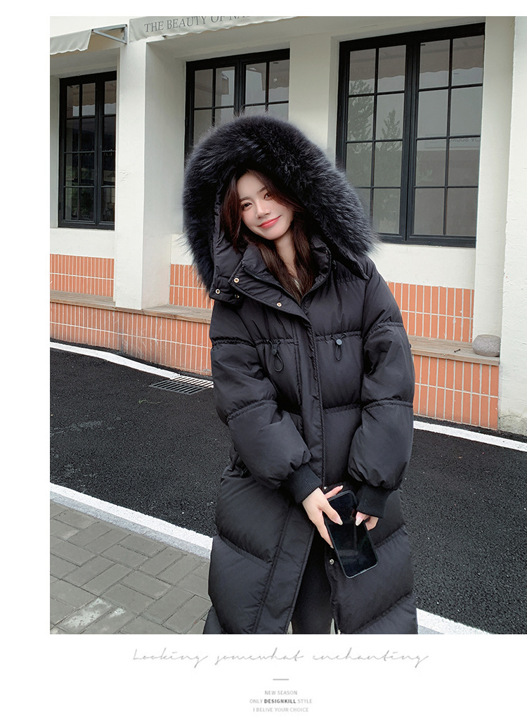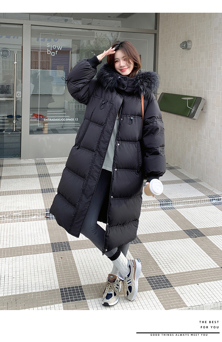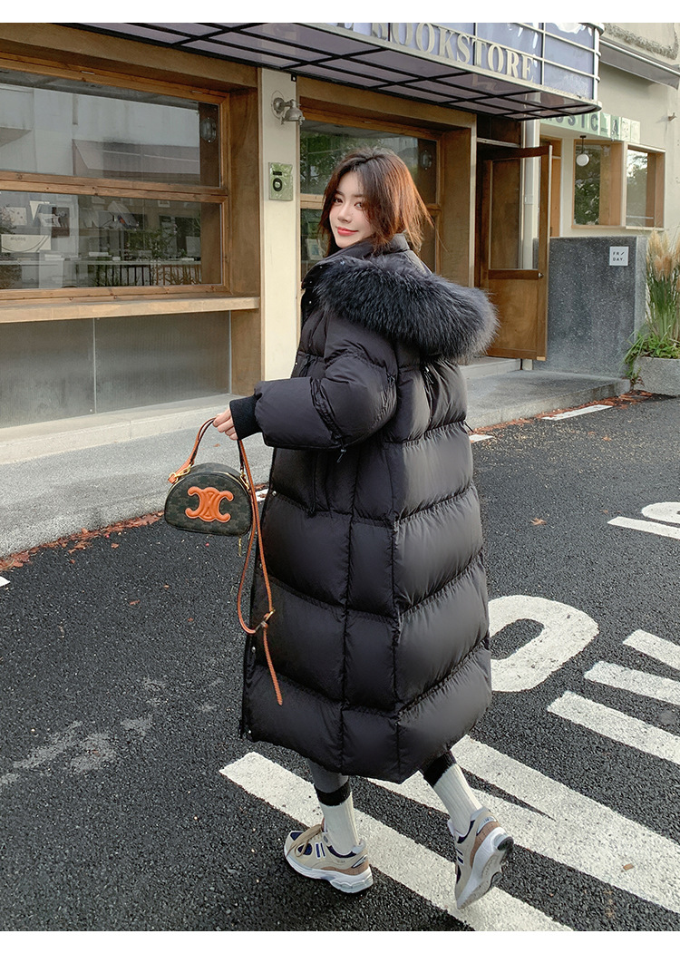 Новая утепленная куртка-пуховик 2025 года в стиле «плюс-сайз» для полных женщин, очень большой размер, удлиненная, ниже колена, с воротником из меха енота, модель 231