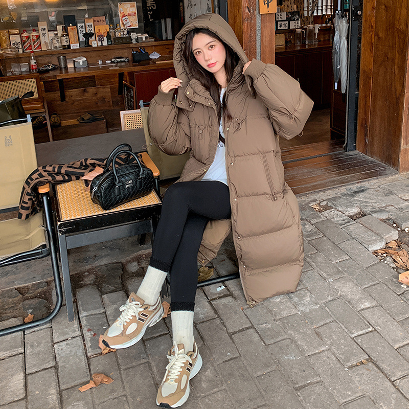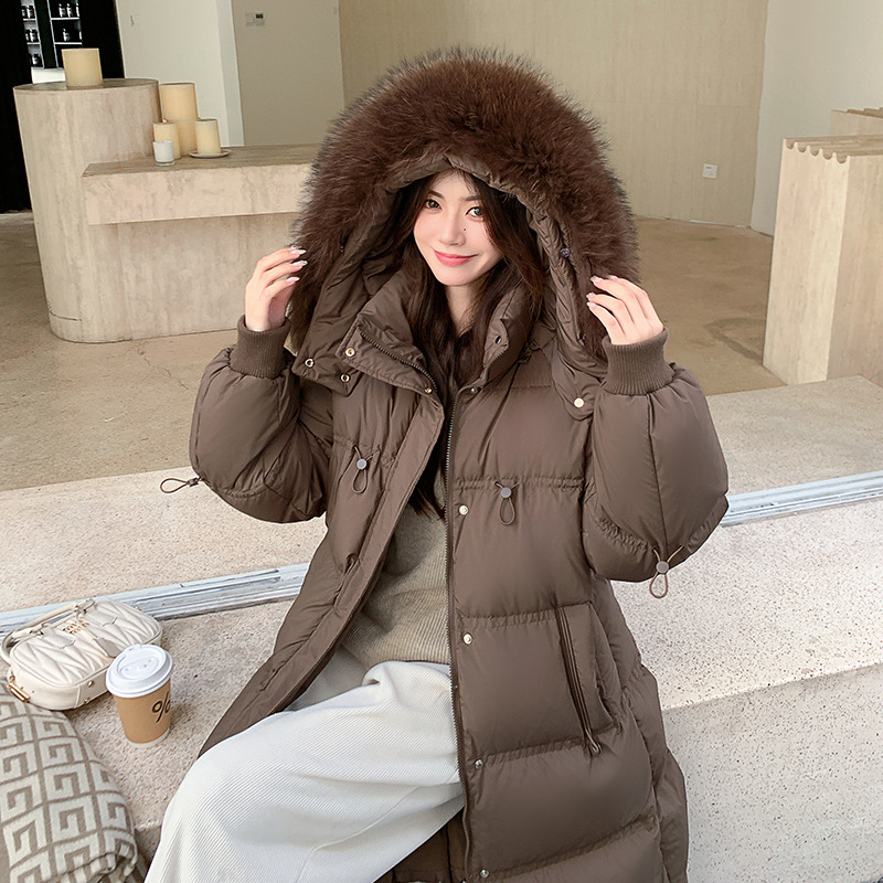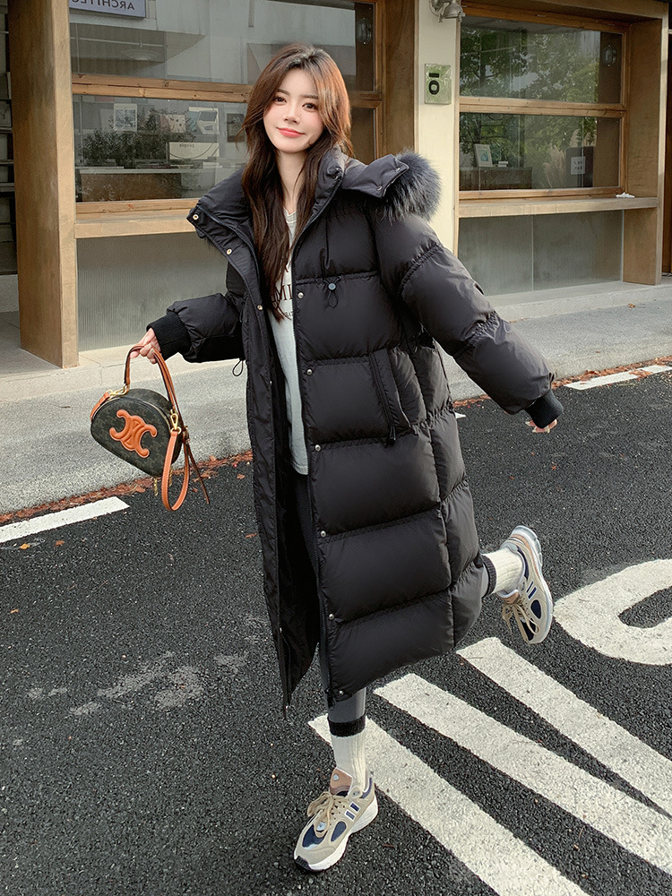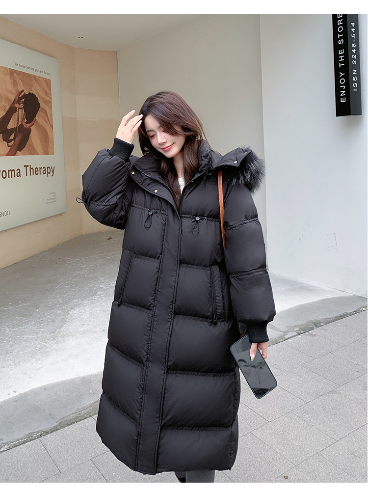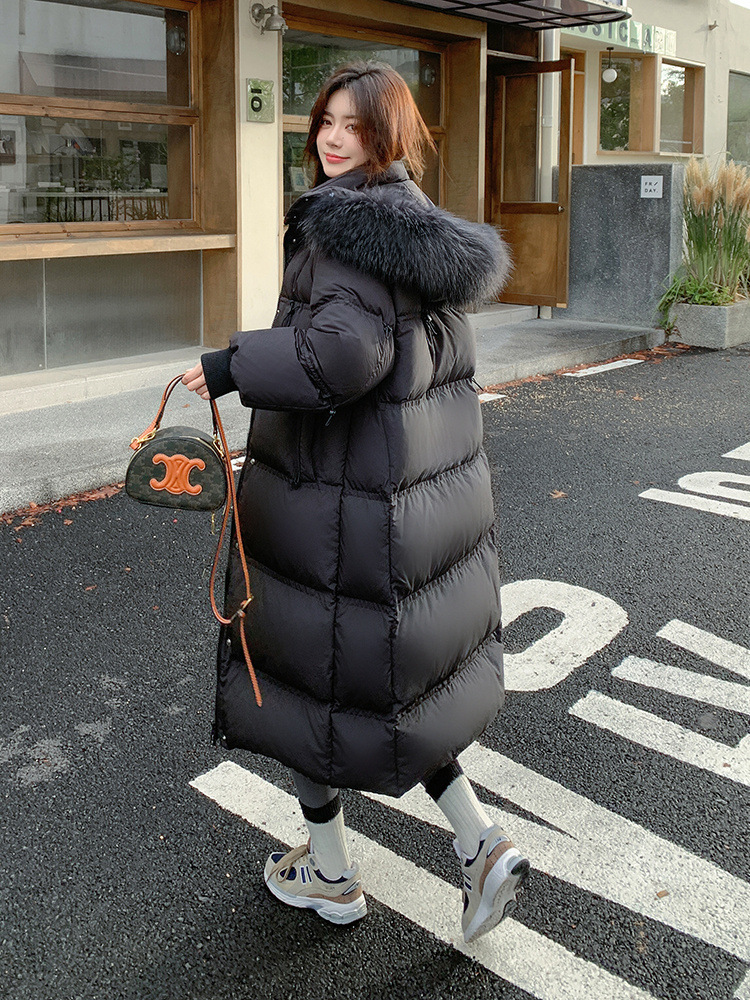 Новая утепленная куртка-пуховик 2025 года в стиле «плюс-сайз» для полных женщин, очень большой размер, удлиненная, ниже колена, с воротником из меха енота, модель 231