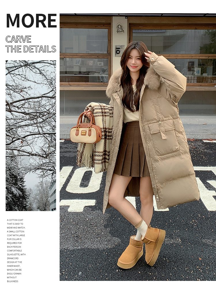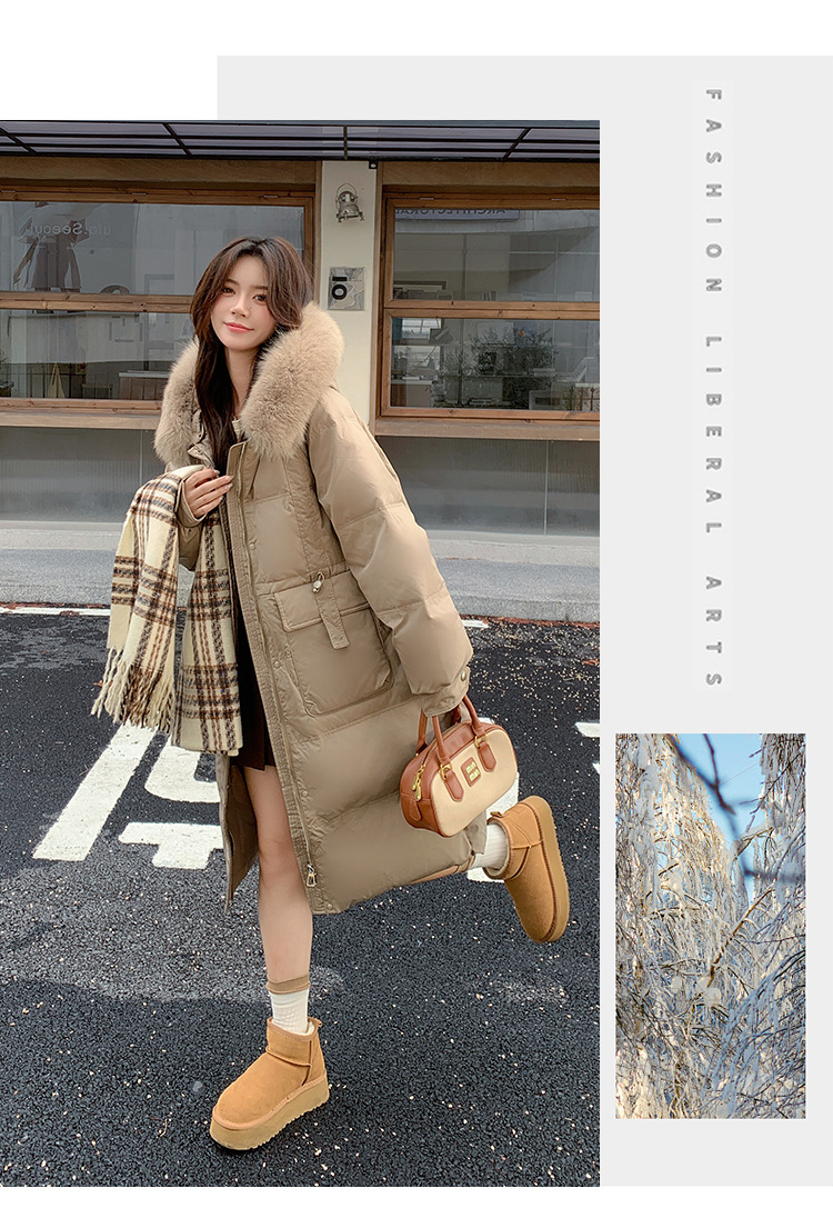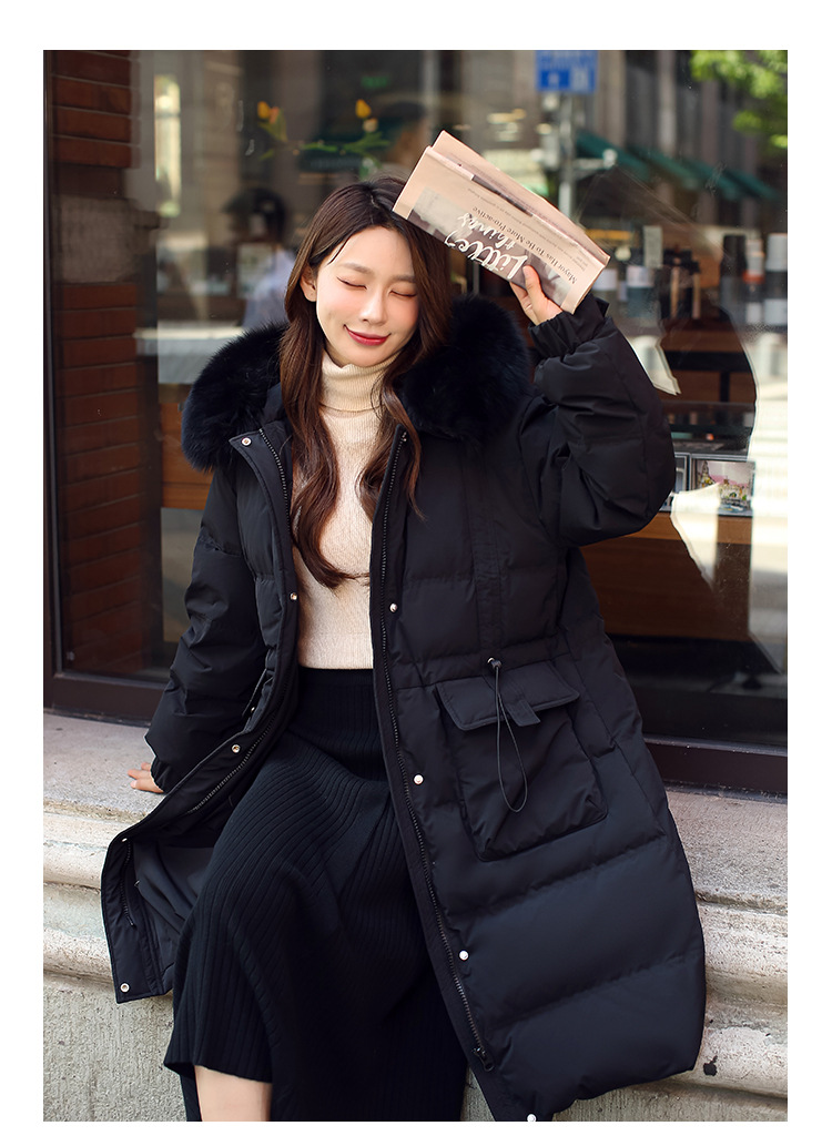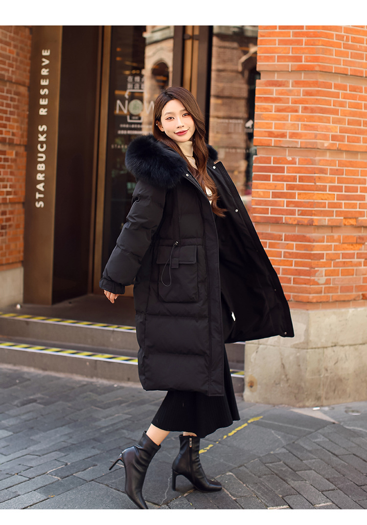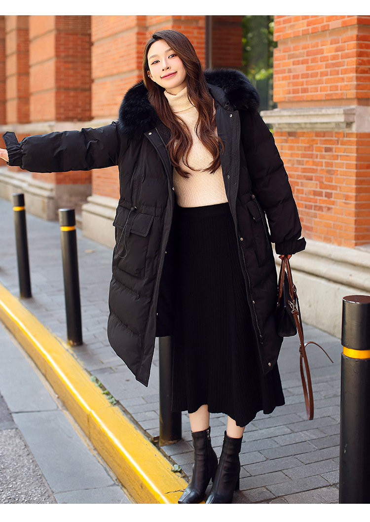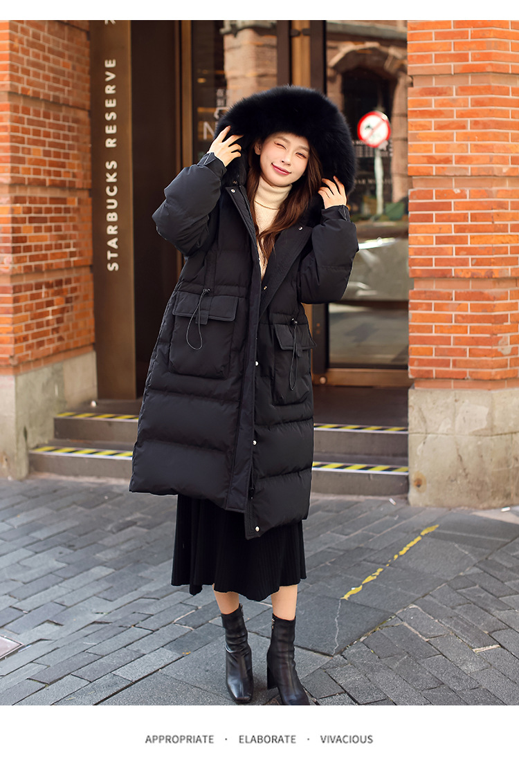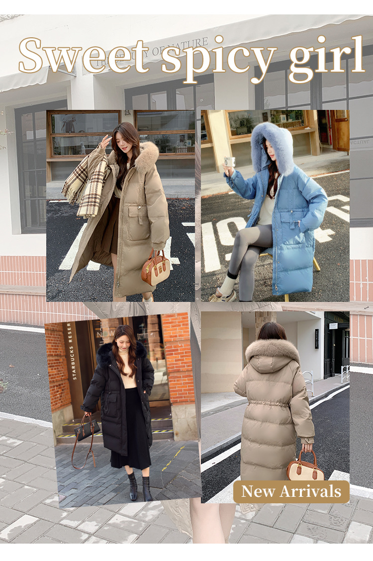 2025 новая женская одежда больших размеров, 100kg модный длинный пуховик для похудения с завязками на талии и воротником из лисьего меха 218