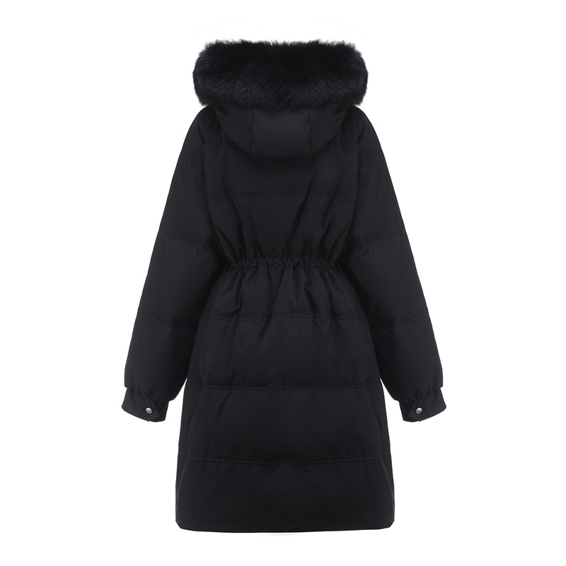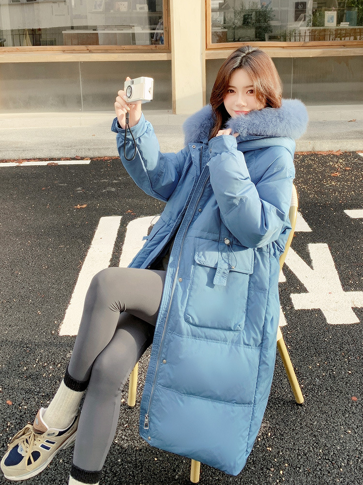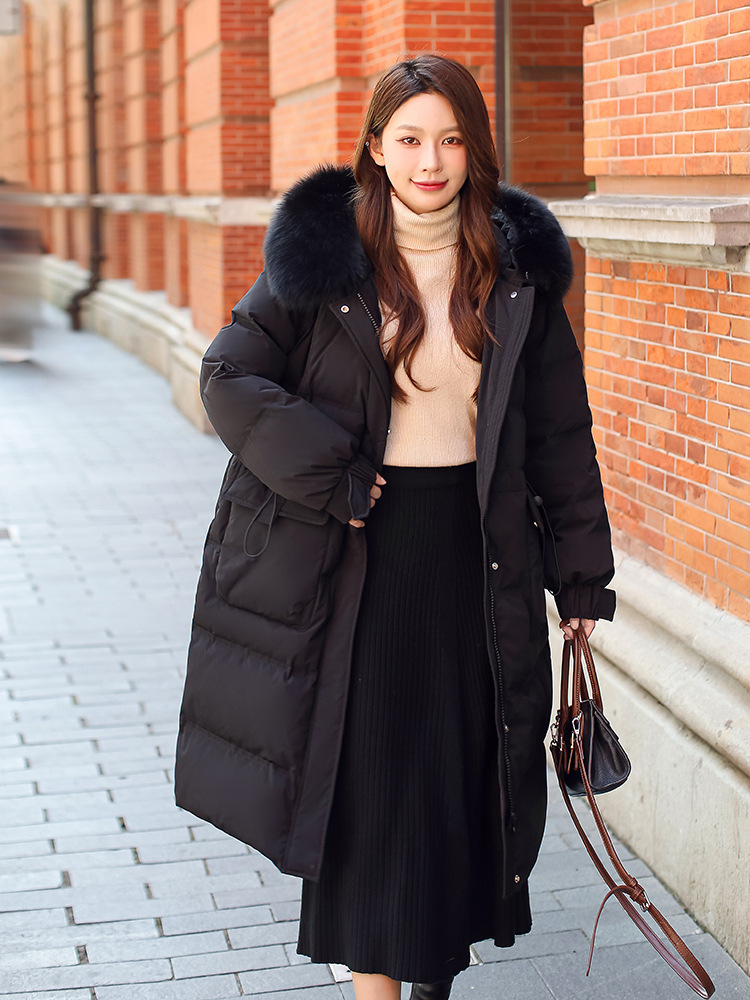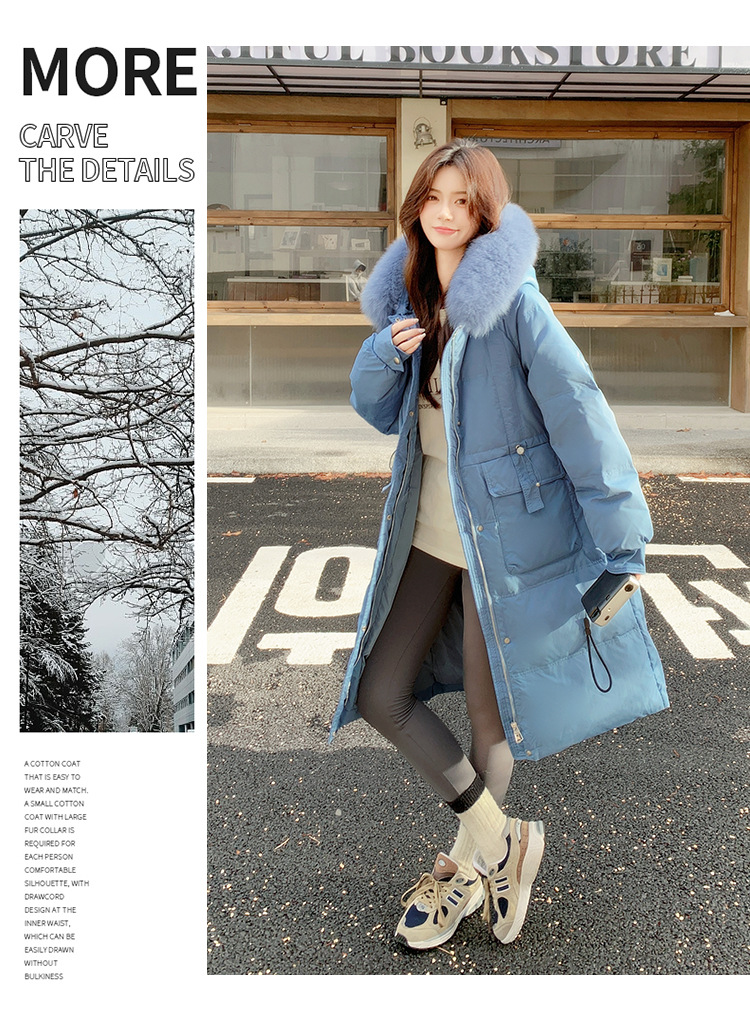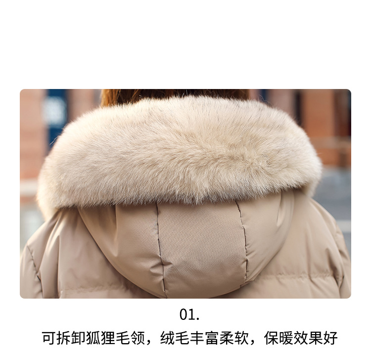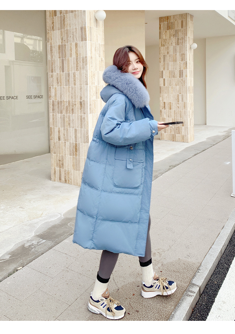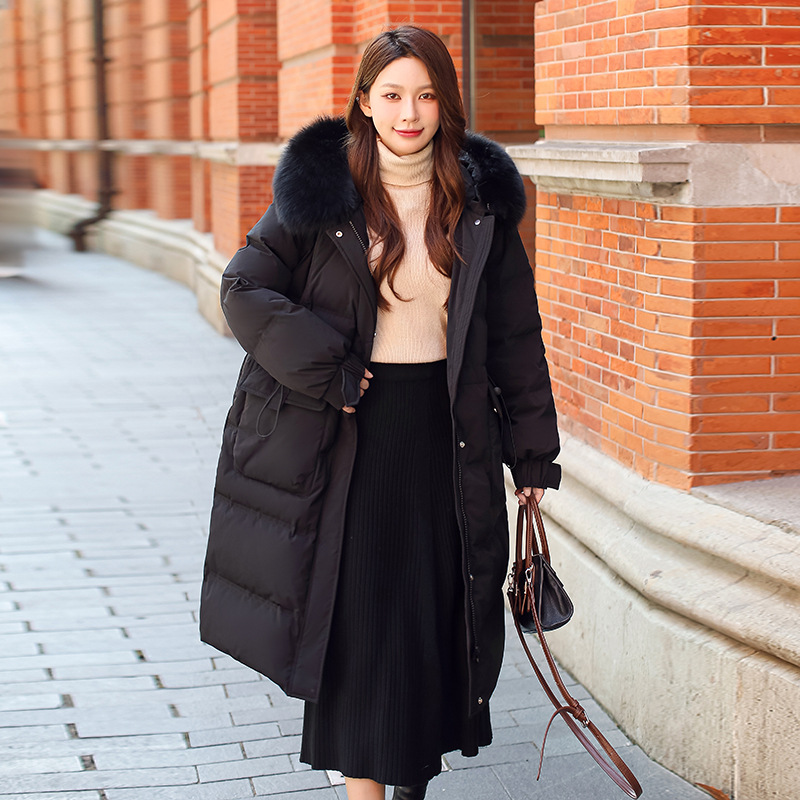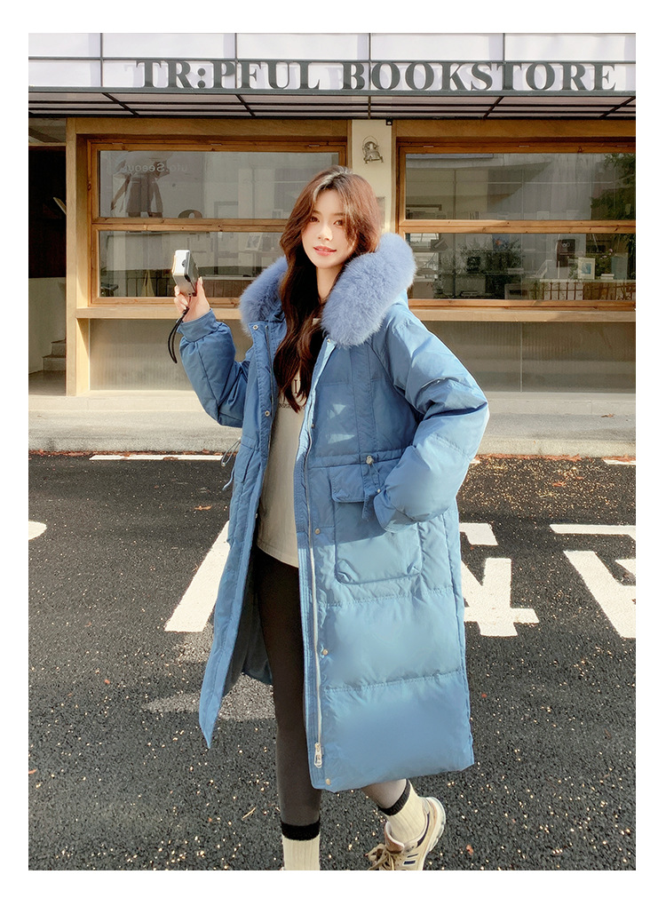 2025 новая женская одежда больших размеров, 100kg модный длинный пуховик для похудения с завязками на талии и воротником из лисьего меха 218