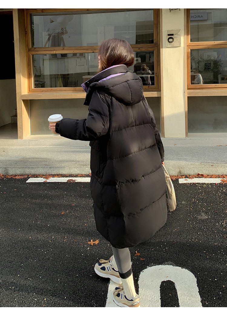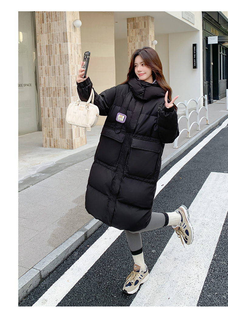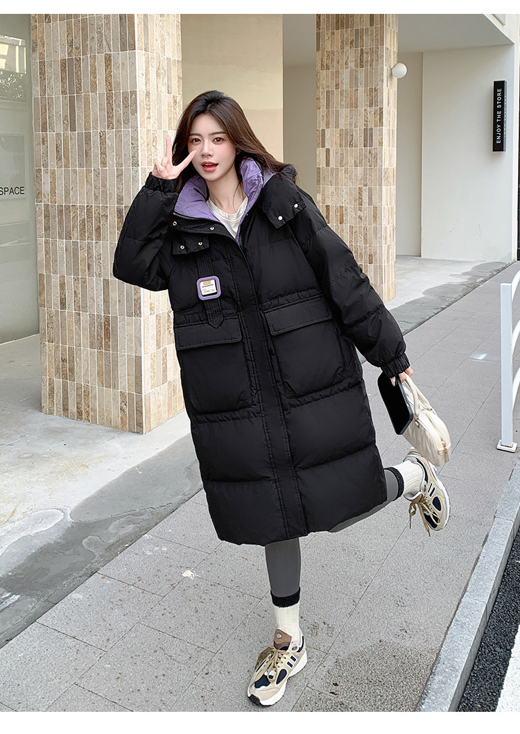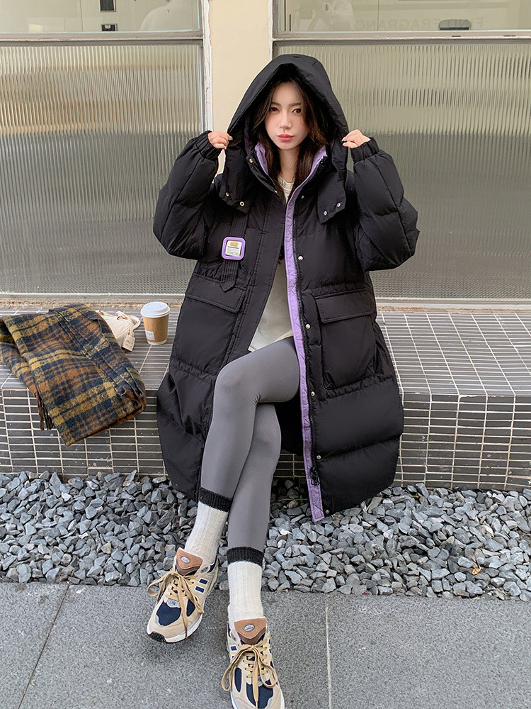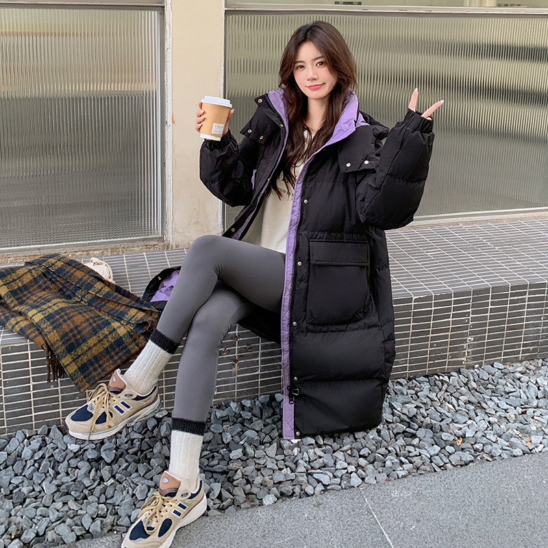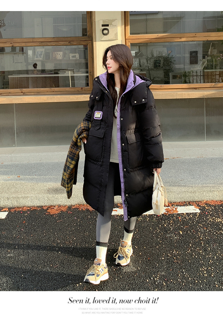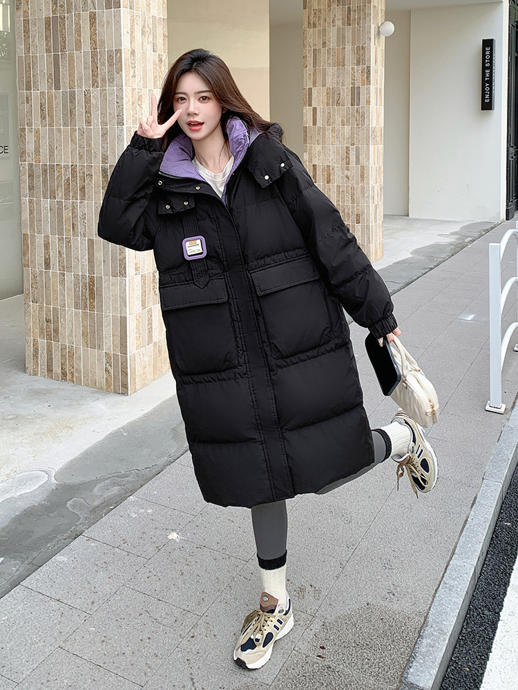 2025 новый корейский стиль, длинная зимняя свободная пуховая куртка больших размеров из ангоры с контрастным красным цветом, 230
