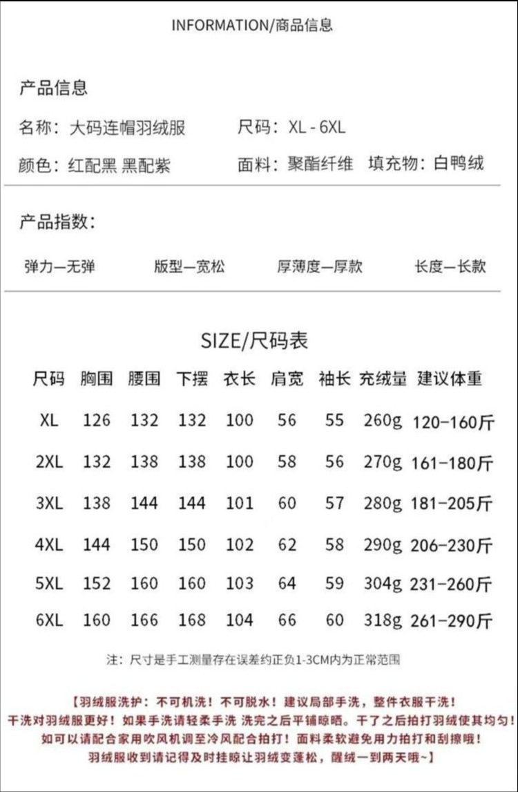 XL(120-160); 2XL(161-180); 3XL(181-205); 4XL(206-230); 5XL(231-260); 6XL(261-290); L