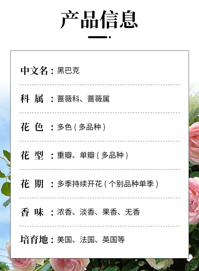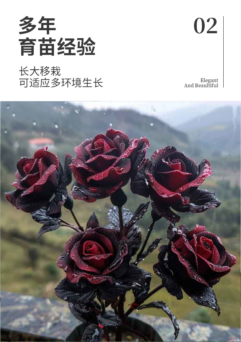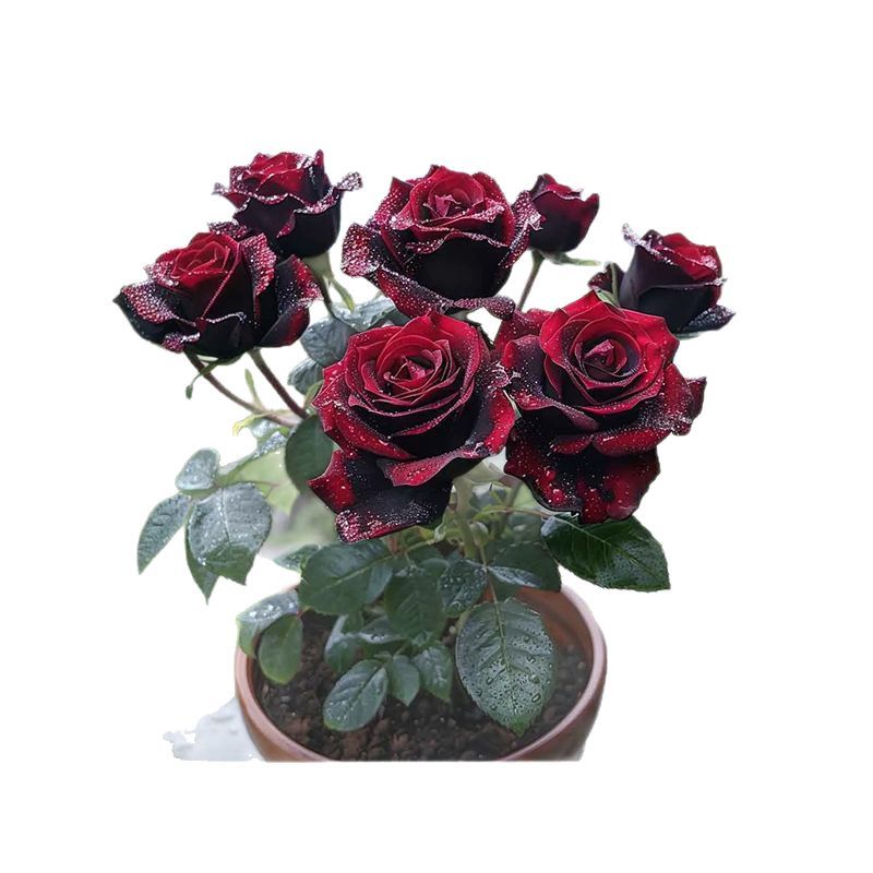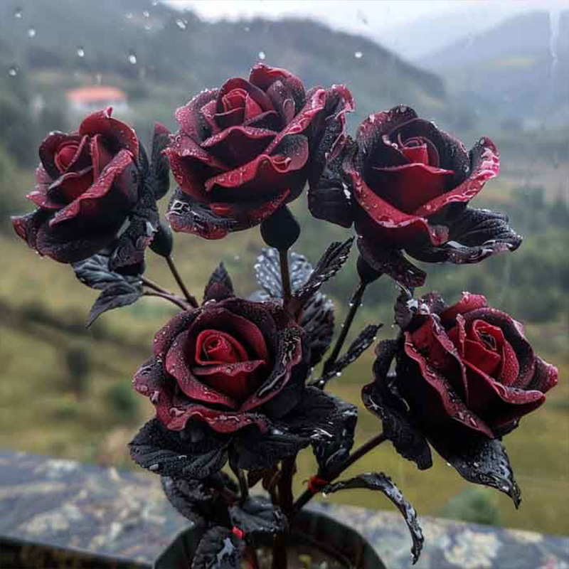 Черная роза Бак, черные розовые розетки, цветет в любое время года, возможна комбинация цветов, высокая декоративность, роза в форме дерева с бутонами.