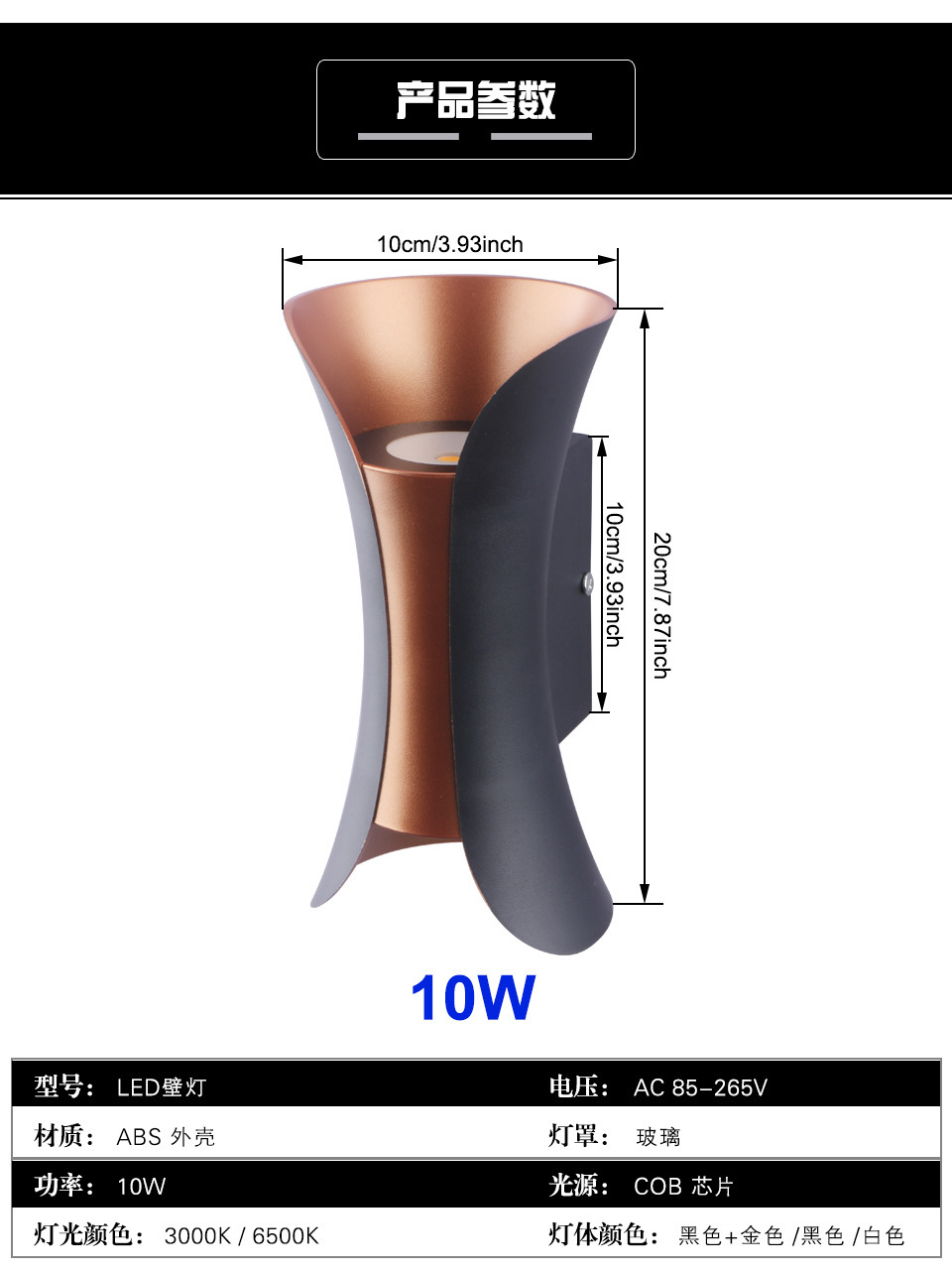 Черный корпус 10 Вт, теплый свет 3000 К.; Черный+золотой корпус 10Вт теплый свет 3000К; Белый корпус 10 Вт, теплый свет 3000 К.; Черный корпус 10 Вт, белый свет 6500 К.; Черный + золотой корпус 10 Вт, белый свет 6500 К; Белый корпус 10 Вт, белый свет 6500 К; 2 упаковки/черный+золотой 10 Вт теплый свет 3000К