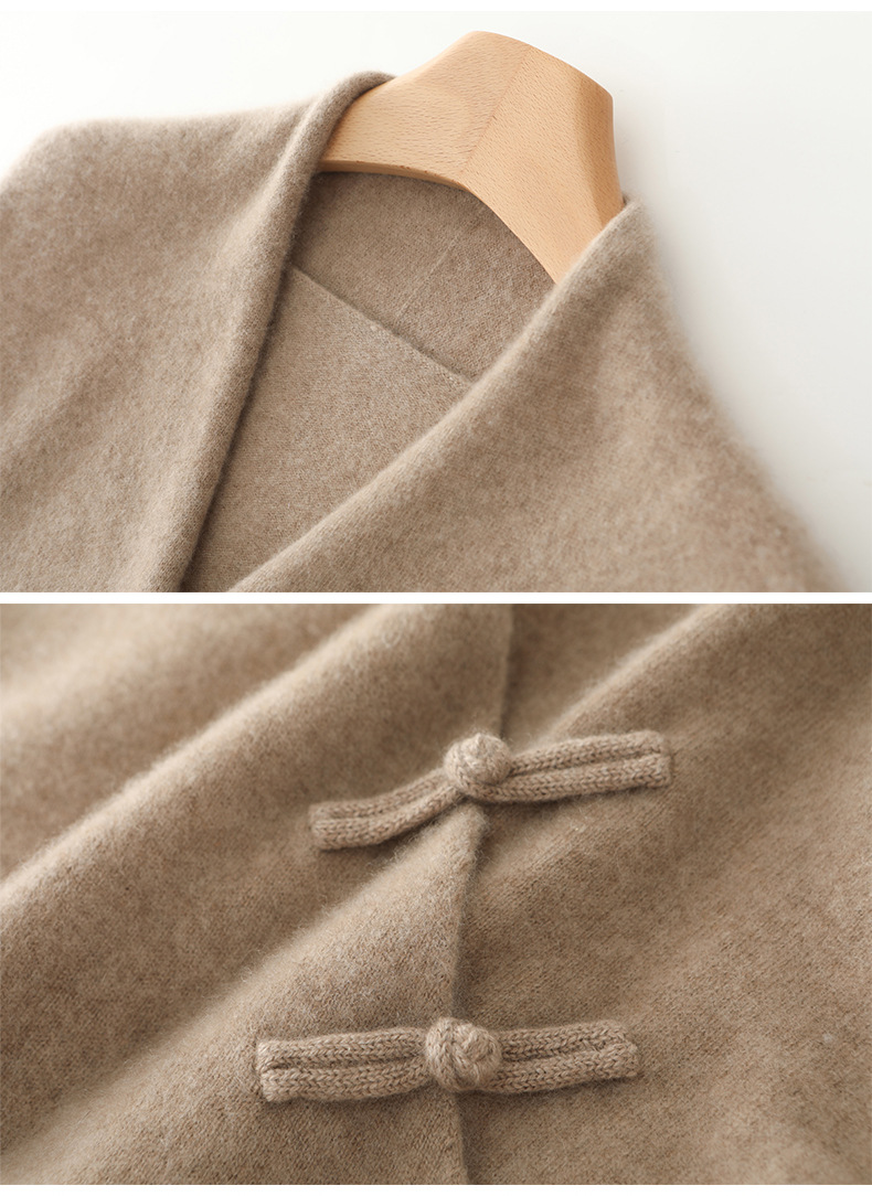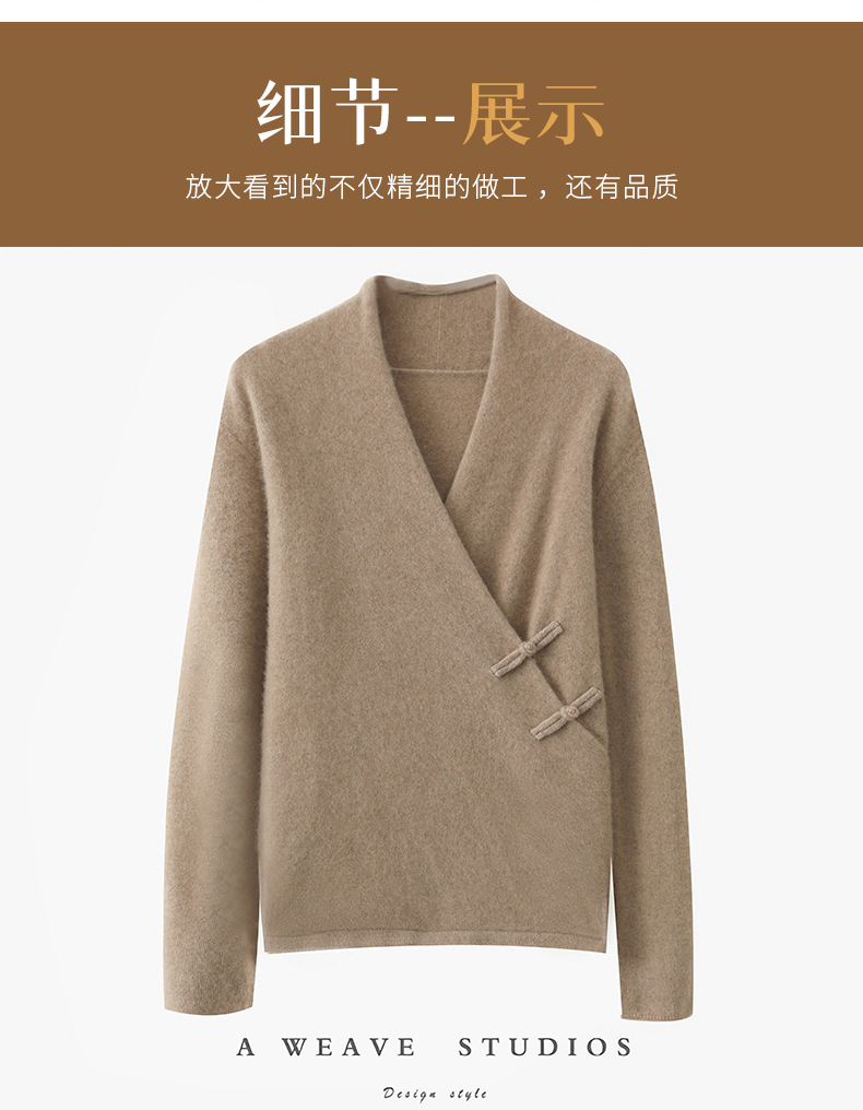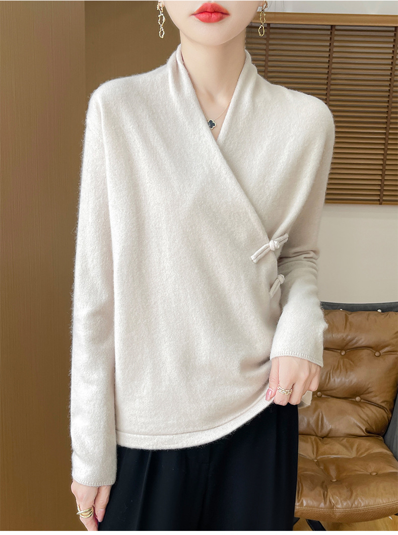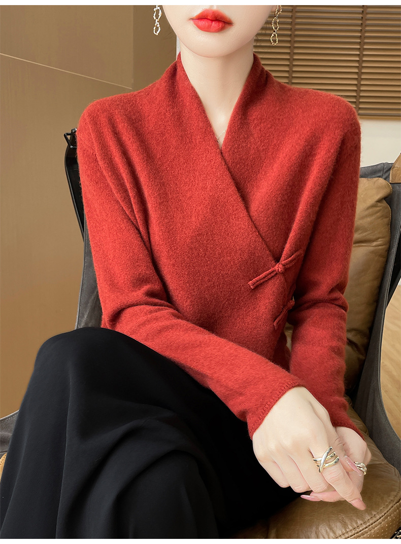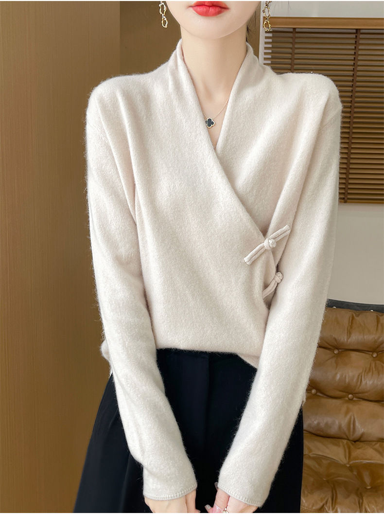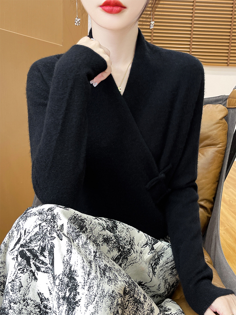 Новый осенне-зимний свитер из 100% чистой шерсти с перекрестным воротником, элегантной застежкой на пуговицы, длинными рукавами, вязаный кашемировый свитер-базовый слой.