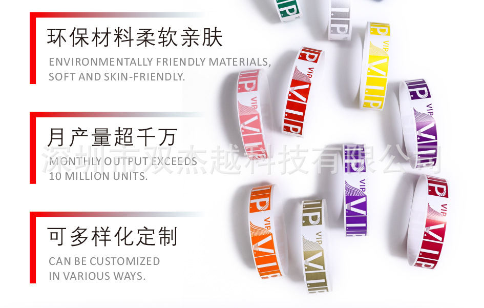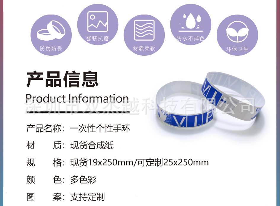 Точечный одноразовый браслет VIP, трансграничные поставки, парк развлечений, концертный билет, одноразовый браслет из синтетической бумаги