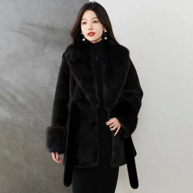 Большая лисица с шерстяным воротником, норковая шерсть, женская средняя и длинная меховая куртка