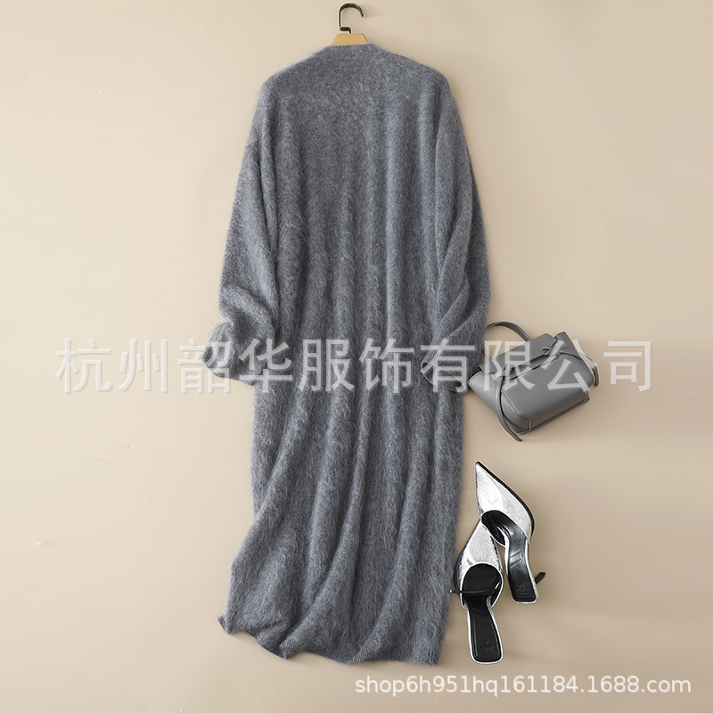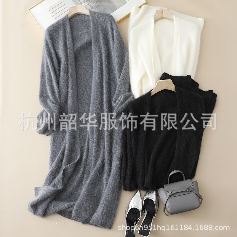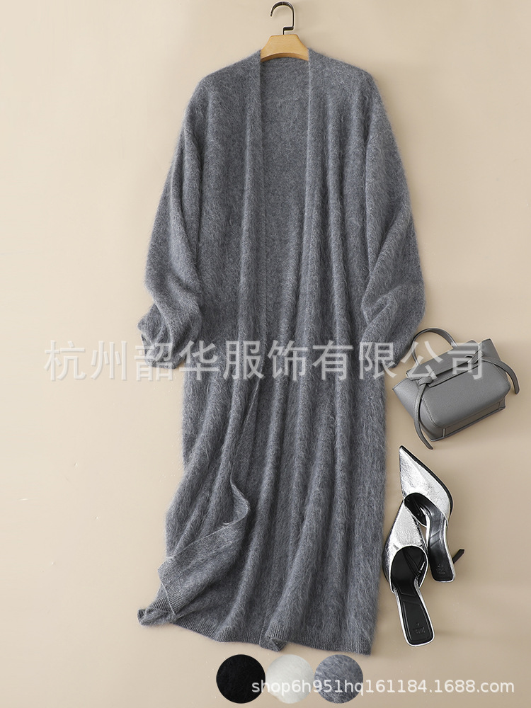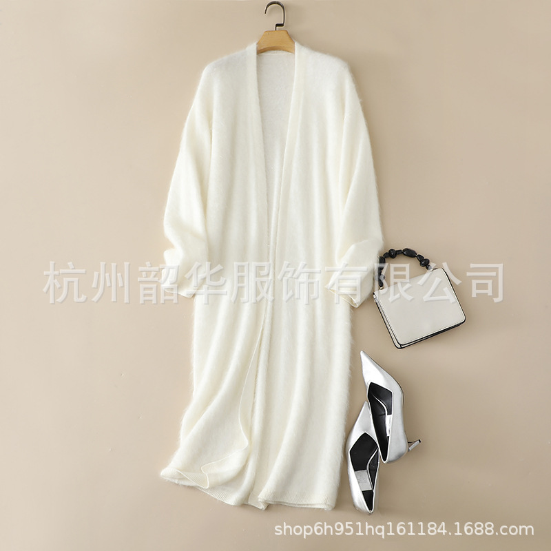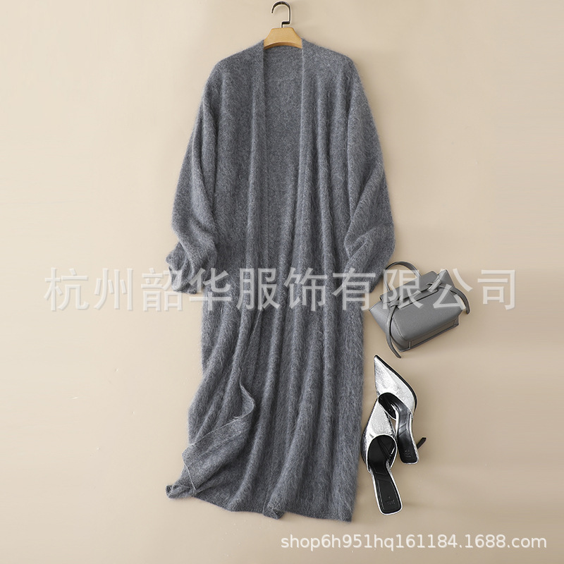 Ленивый высококачественный роскошный кашемировый кашемировый пушистый длинный свитер без пряжки длинный кардиган темперамент модный простой сдержанный пиджак
