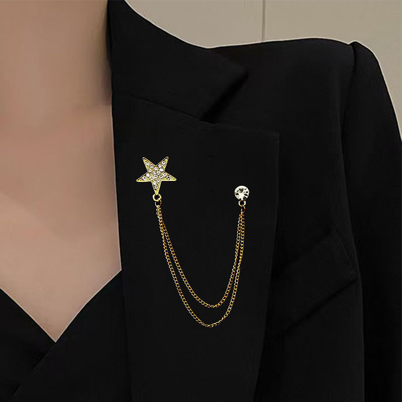Модная мода мужская цепь пятиконечная звезда брошь с бриллиантами короной лев персонализированный костюм аксессуары воротник украшения